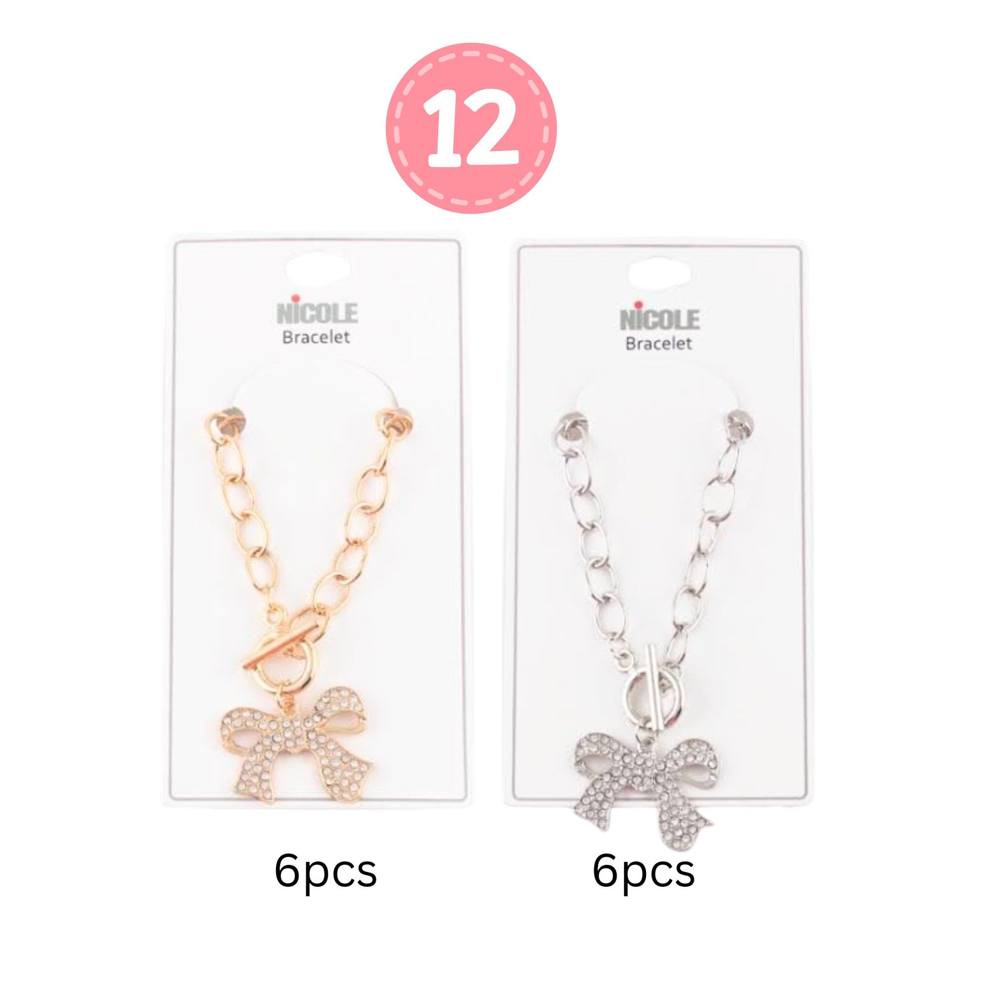 Bold Glam: Crystal Bow Charm Bracelet with Chunky Chain