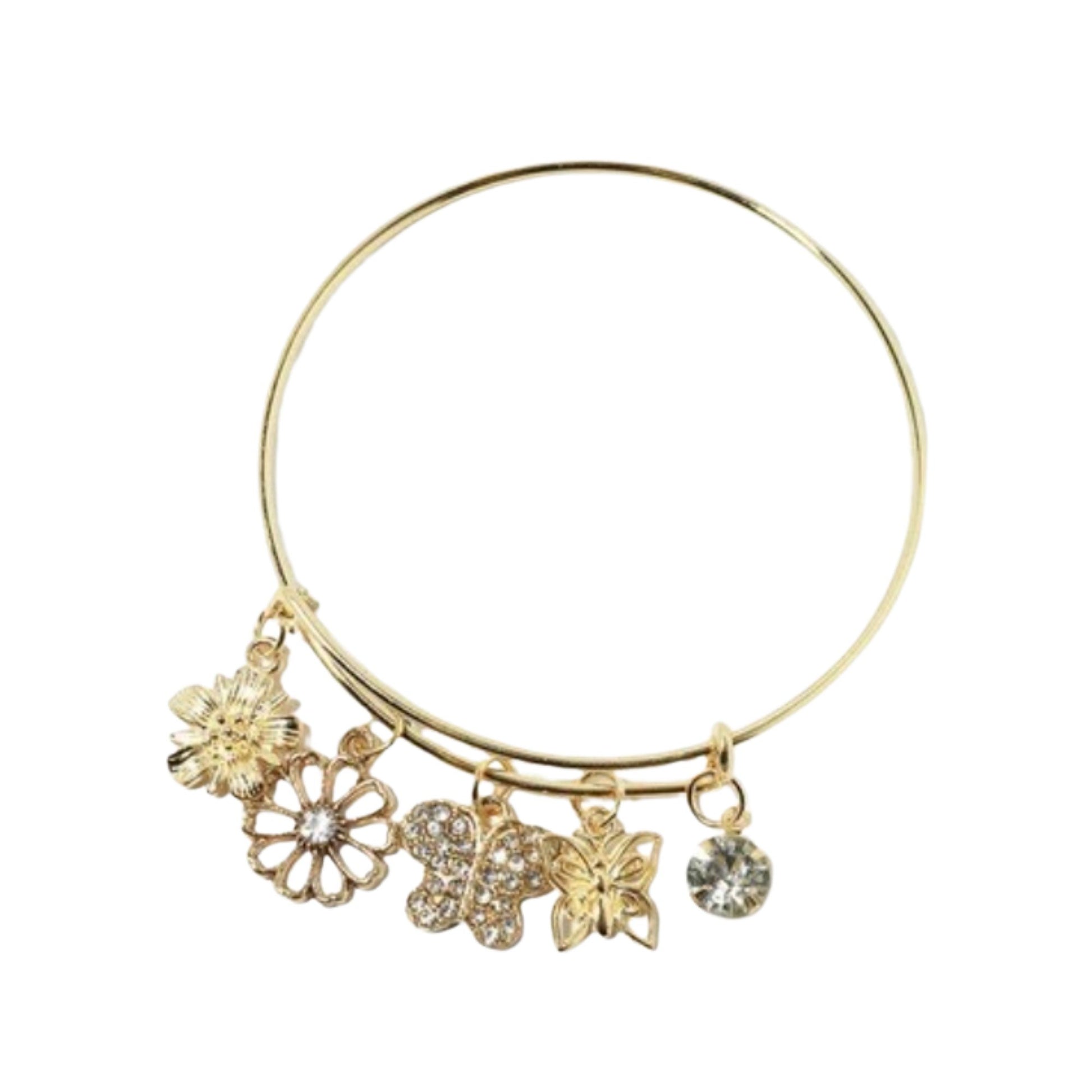 Butterfly and Floral Charm Bangle in Gold and Silver Tone