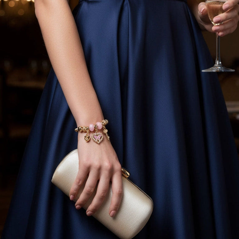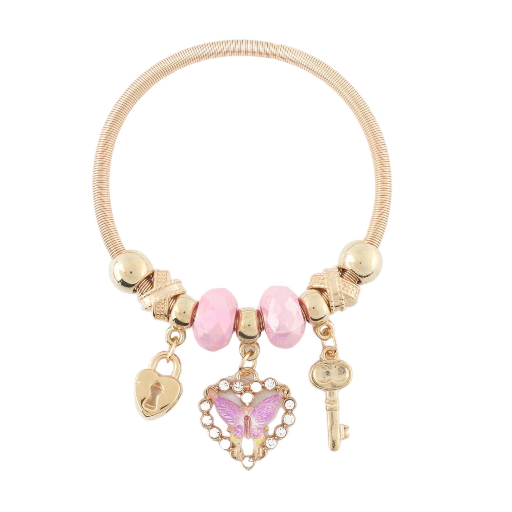 Your Secret Garden Charm Bracelet - Lock, Key, and Pink Butterfly