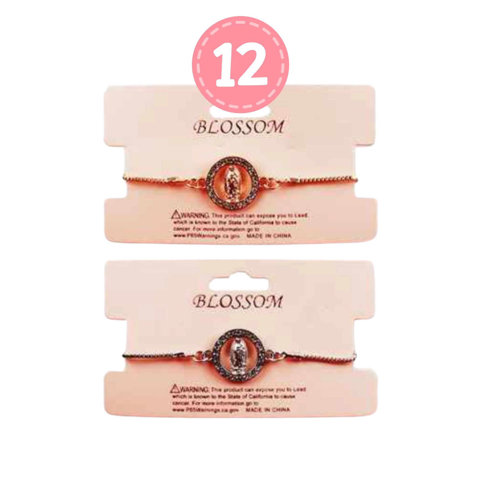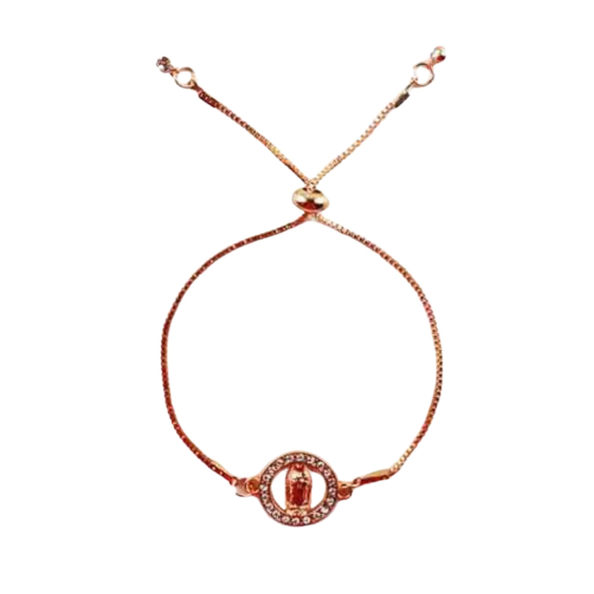 Sacred Sparkle: Adjustable Virgin Mary Bolo Bracelet in Rose Gold