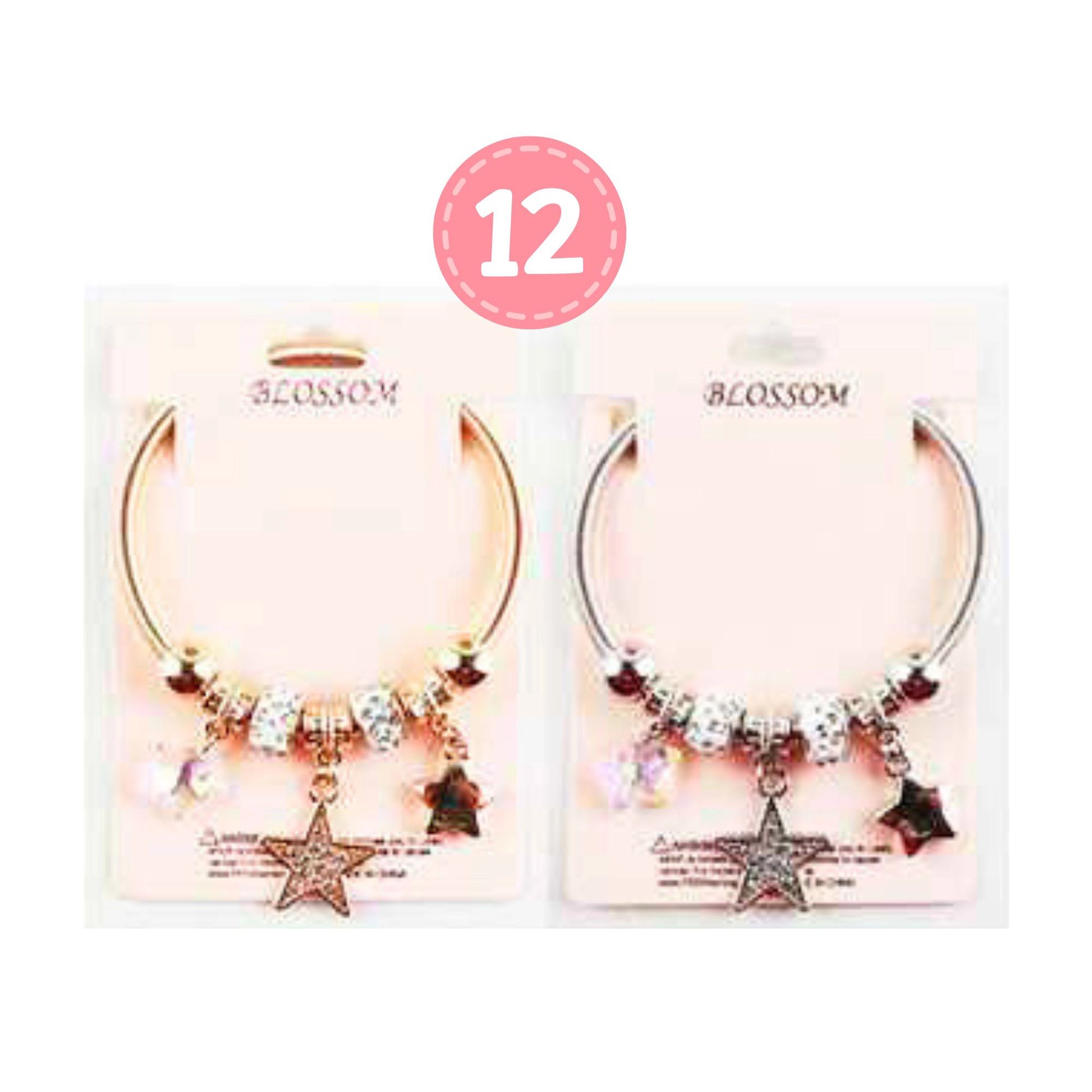 Celestial Sparkle Star Charm Open Bangle Bracelet