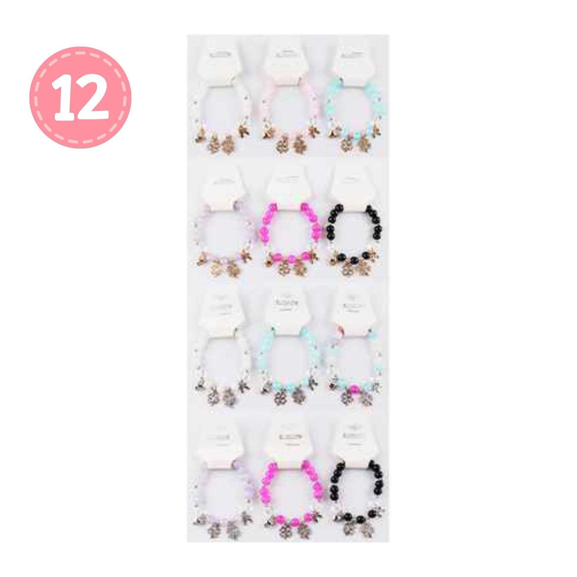 Beaded Charm Bracelet with Clover and Heart Charms – Lucky Stretch Bracelet for Women