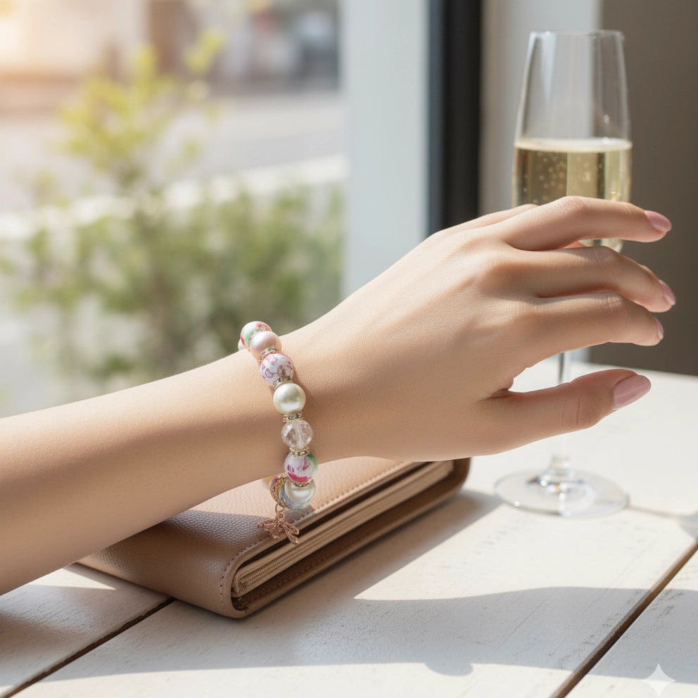 This bracelet meshes soft, feminine florals with playful hints of color, making it ideal for springtime looks, casual everyday wear, or as a gentle accent to a more formal outfit. The butterfly adds a charming focal point without overpowering the design. It’s a lovely gift for birthdays, Mother’s Day, or for anyone who appreciates feminine, whimsical jewelry.