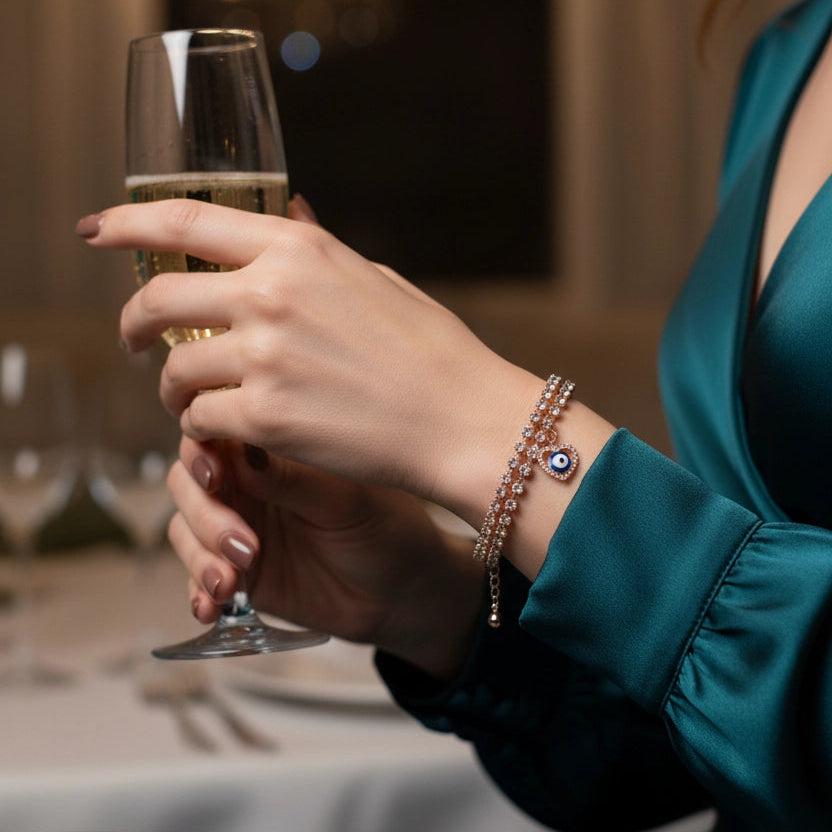 Style: It beautifully combines glamorous, high-sparkle elements with the trendy, protective symbolism of the Evil Eye, making it a perfect statement piece for everyday wear or a night out.