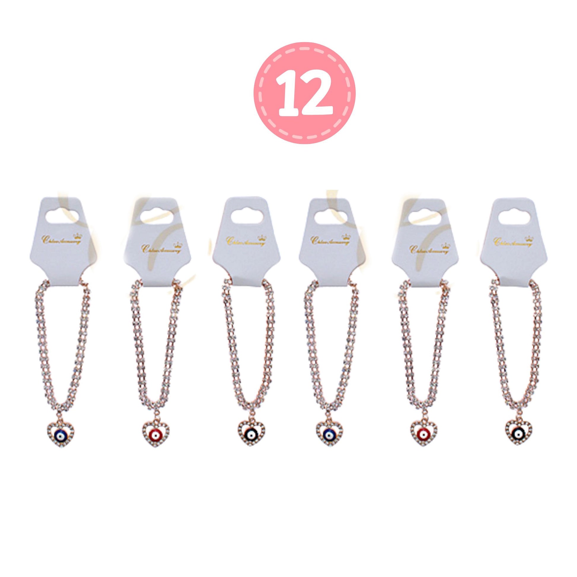 This stunning piece of fashion jewelry is a Rhinestone Evil Eye Heart Charm Bracelet.