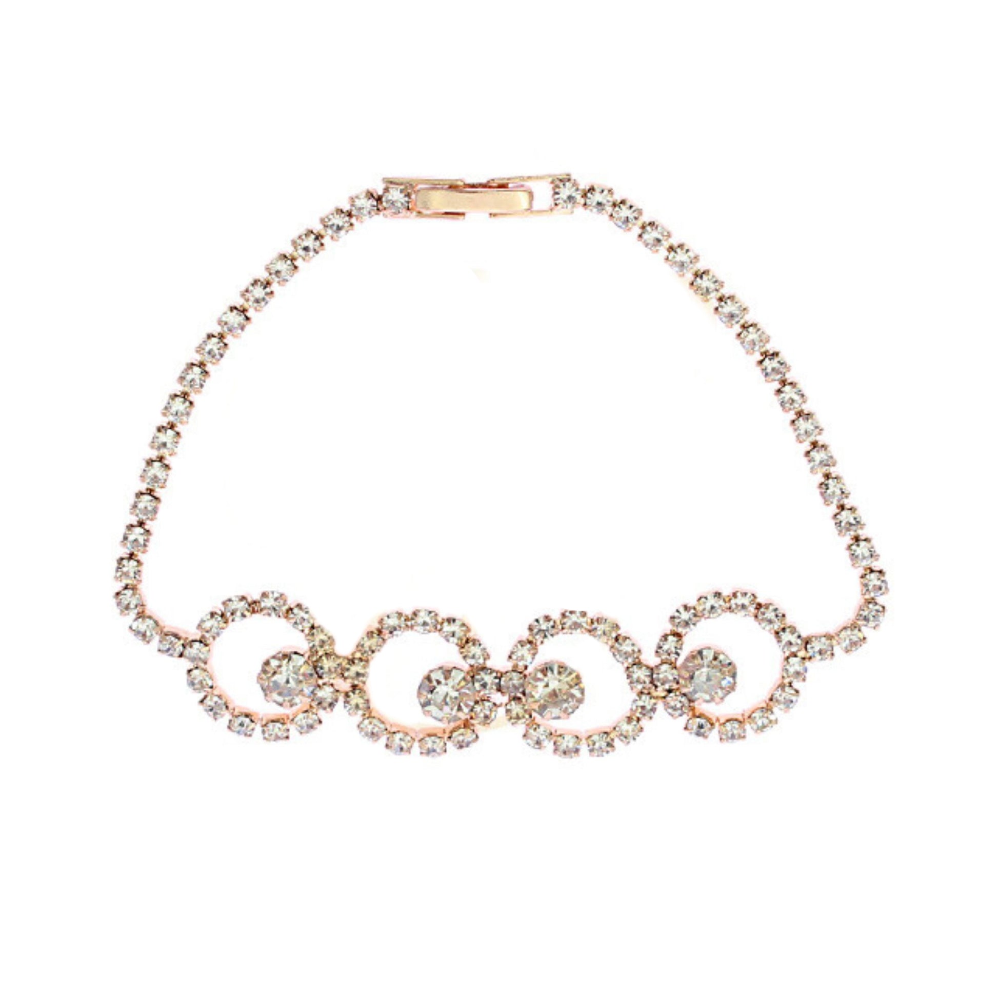 Step into classic elegance with this stunning pave crystal link bracelet. Featuring a beautiful series of interlocking crystal-encrusted circles, it offers a sophisticated sparkle reminiscent of vintage Hollywood glamour.