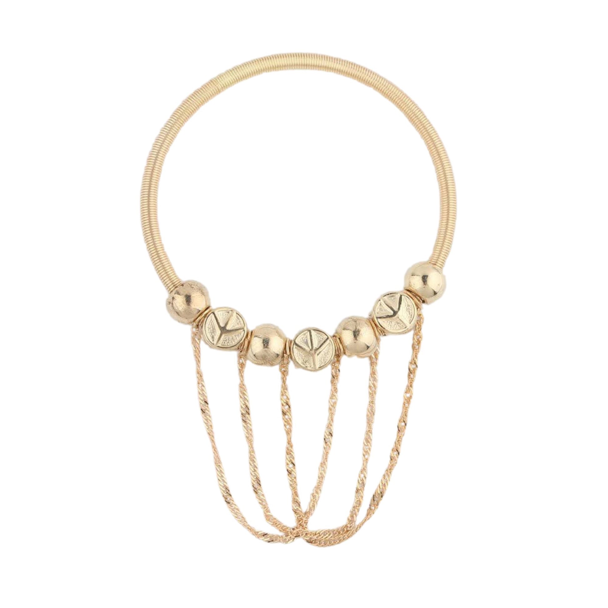 Eelegant Chunky Gold tone Coil Bracelet with Chain Dangles