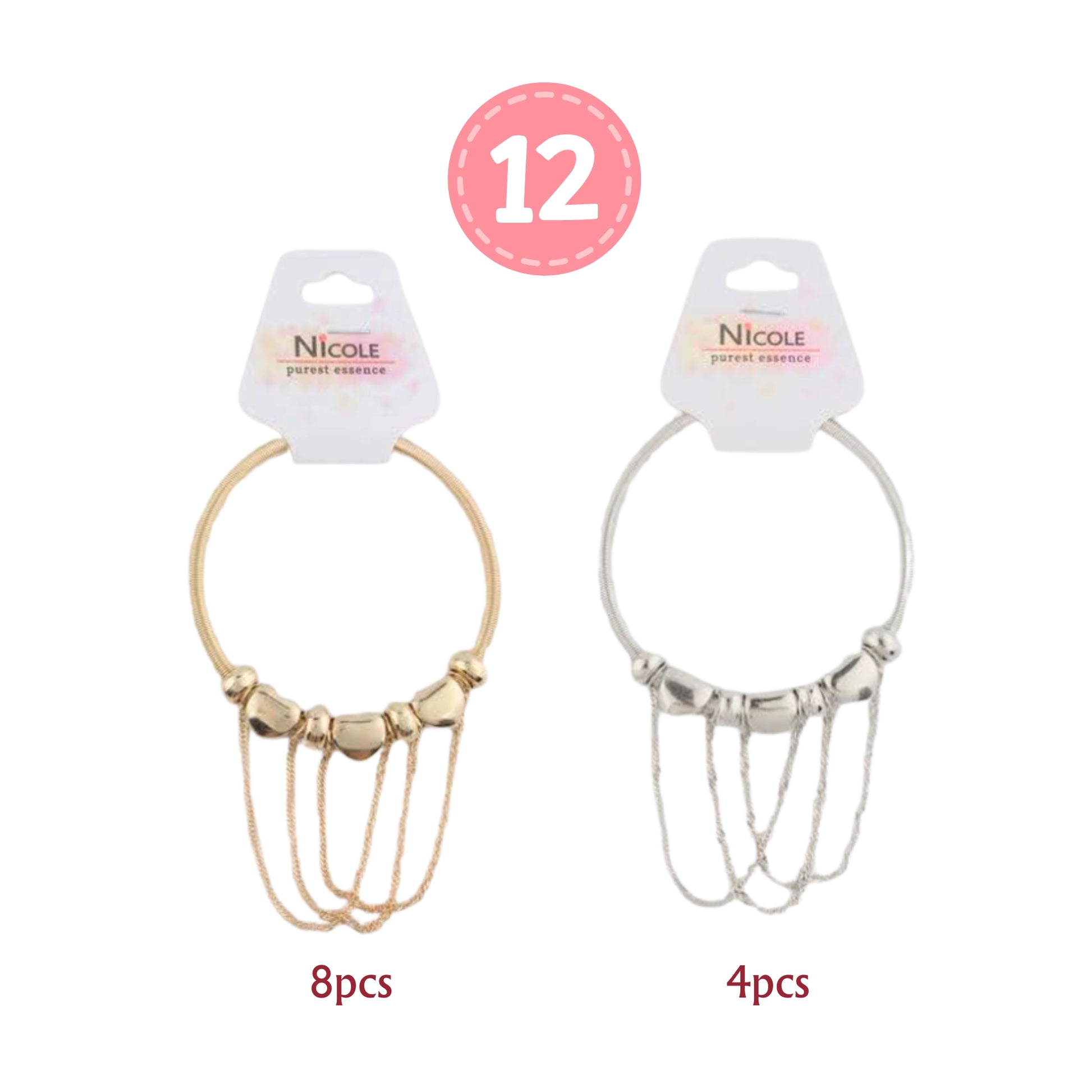 Chunky Gold tone Coil Bracelet with Chain Dangles