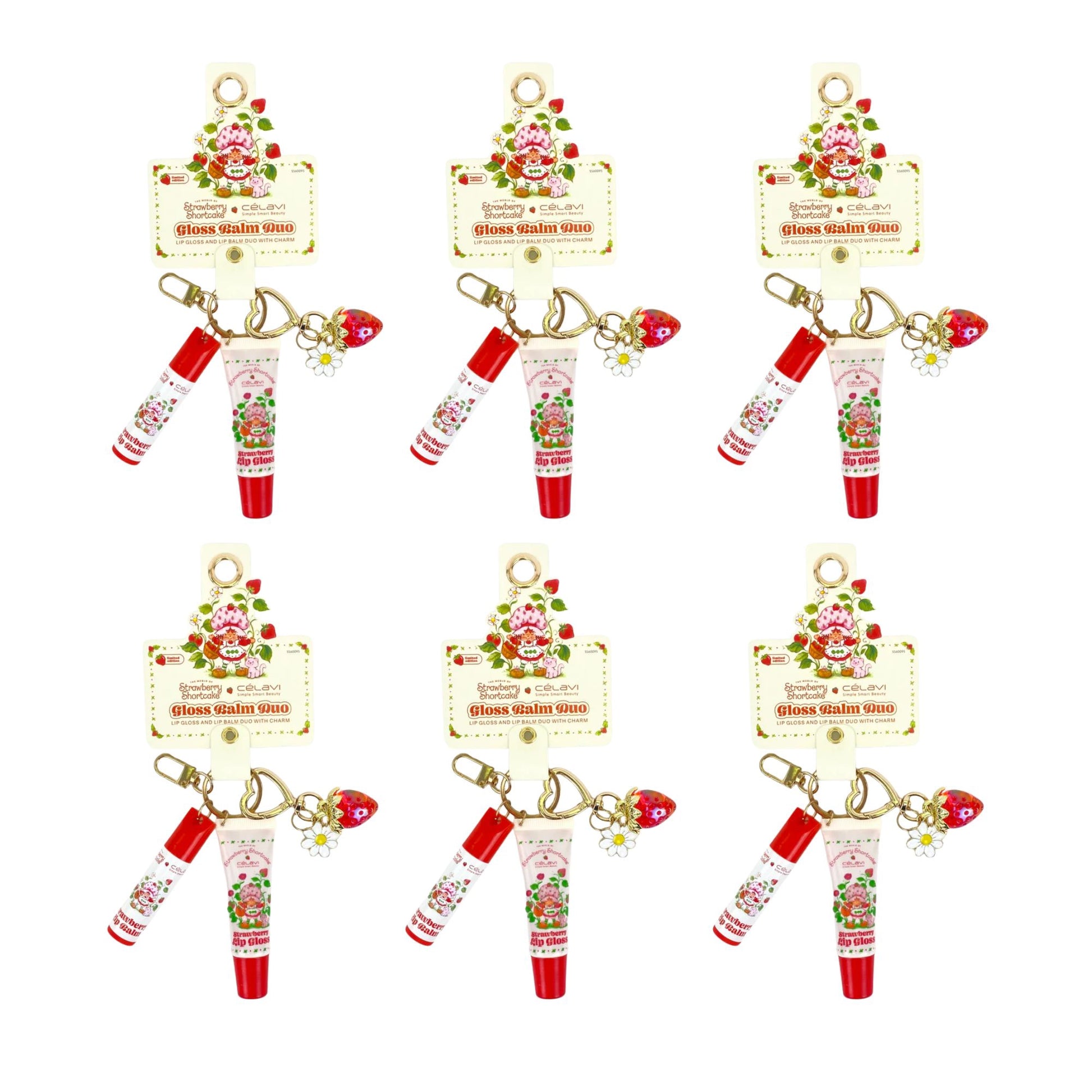 Celavi - Cute Strawberry Shortcake Gloss Balm Duo with Keychain