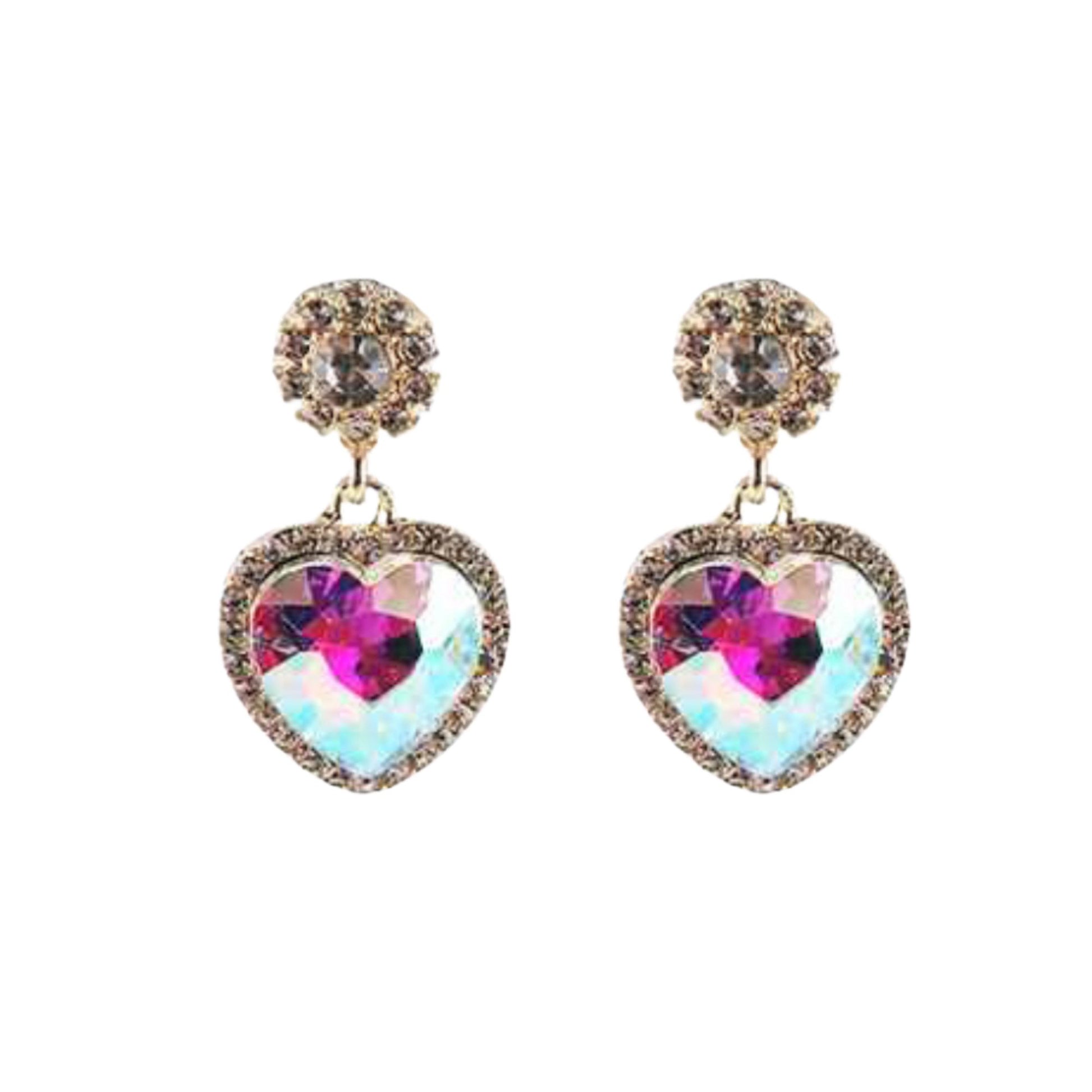 Iridescent Love Drop Earrings | Crystal Heart Dangles