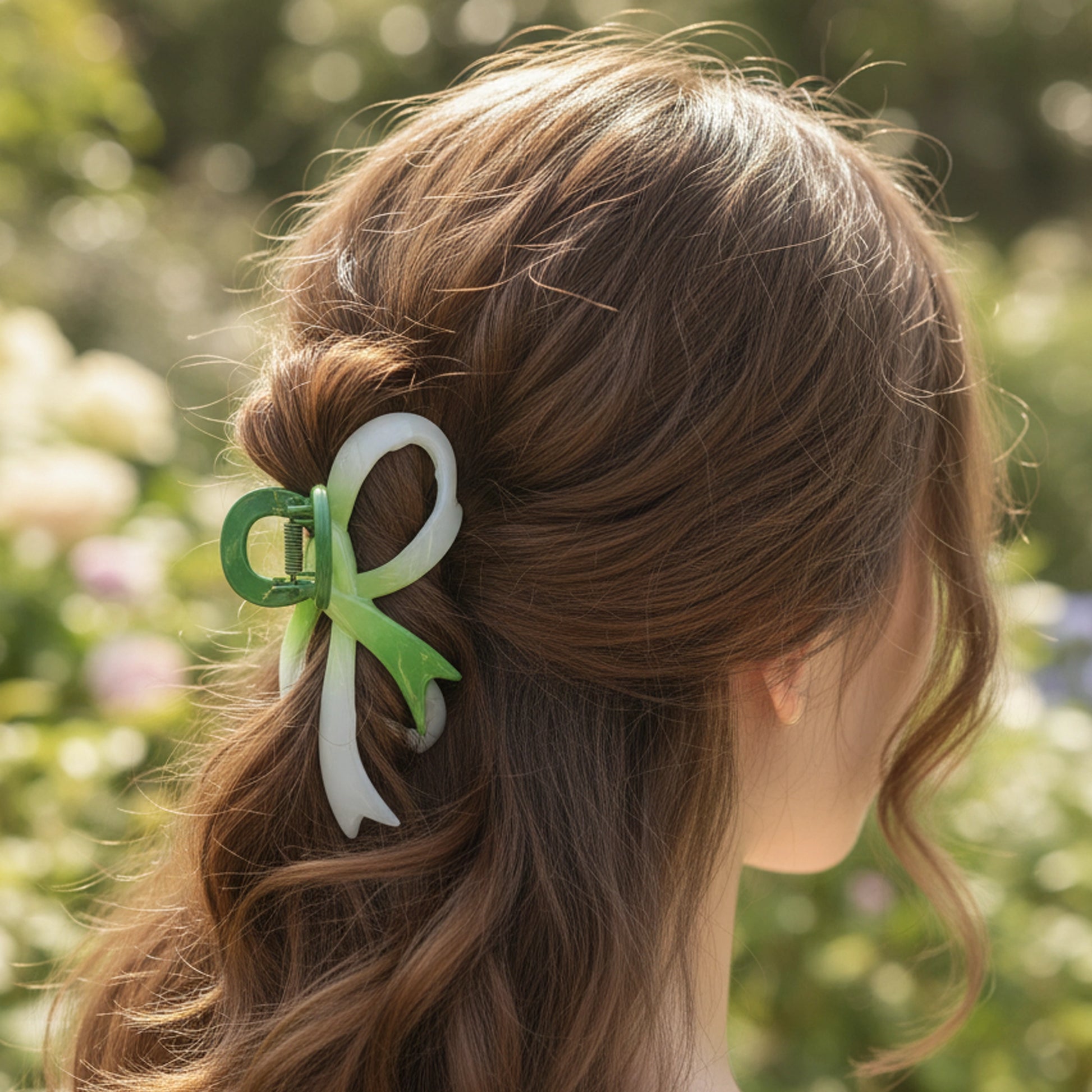 Oversized Ribbon Hair Claw (13 cm) in Ombré Green and more colors