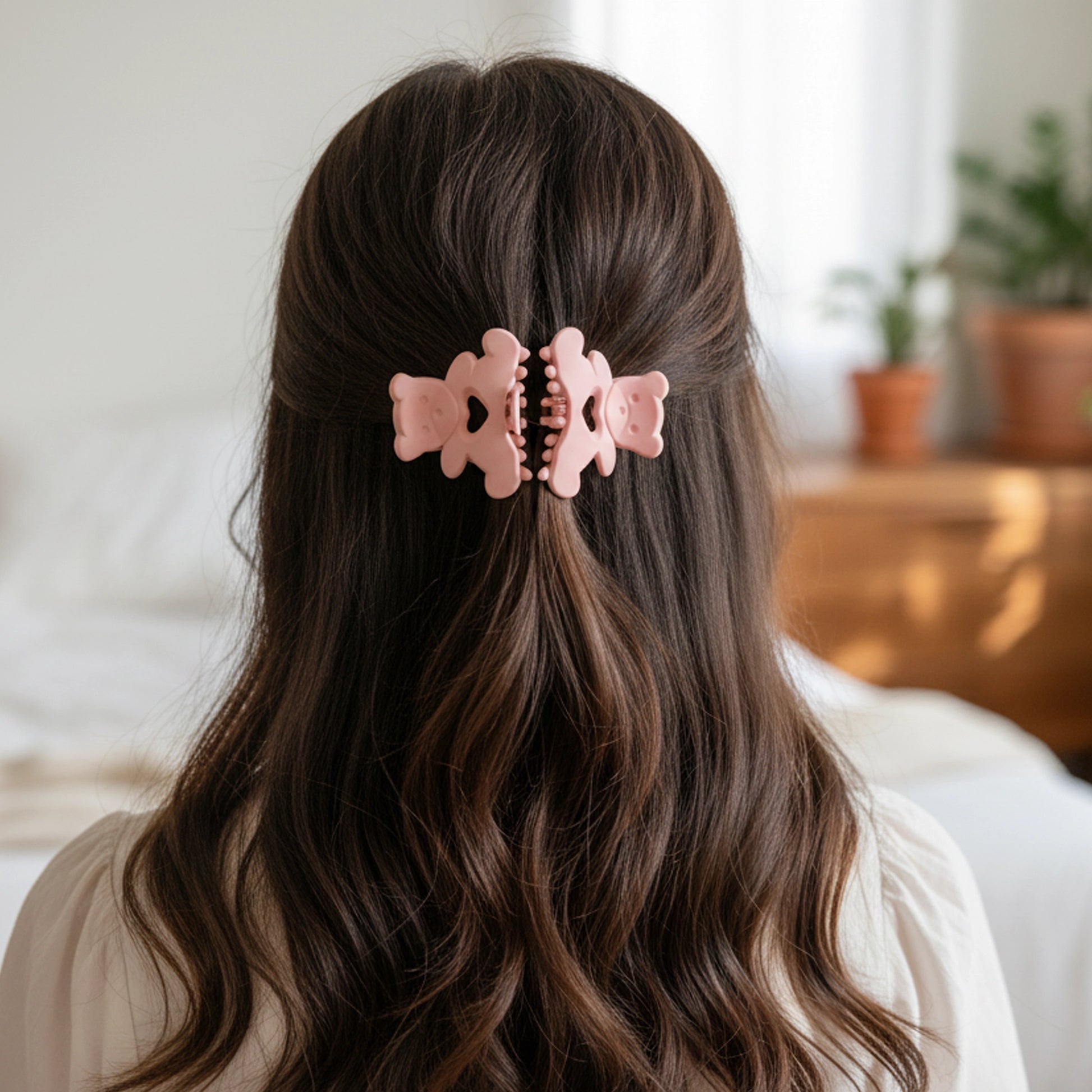Instantly add a dose of kawaii charm with this adorable Mini Bear Claw Clip Set! Each clip is just 4cm long and features a cute teddy bear silhouette in a soft matte pink finish, complete with a tiny heart cutout.