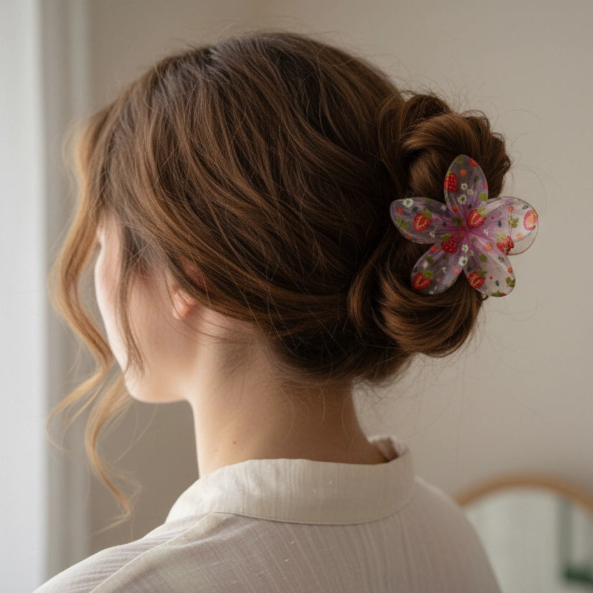 Featuring delicate flower-shaped petals in translucent, colorful acrylic, this claw clip captures light beautifully while keeping your hair neatly secured. Its strong spring mechanism ensures a firm hold, making it both fashionable and functional for all-day wear.