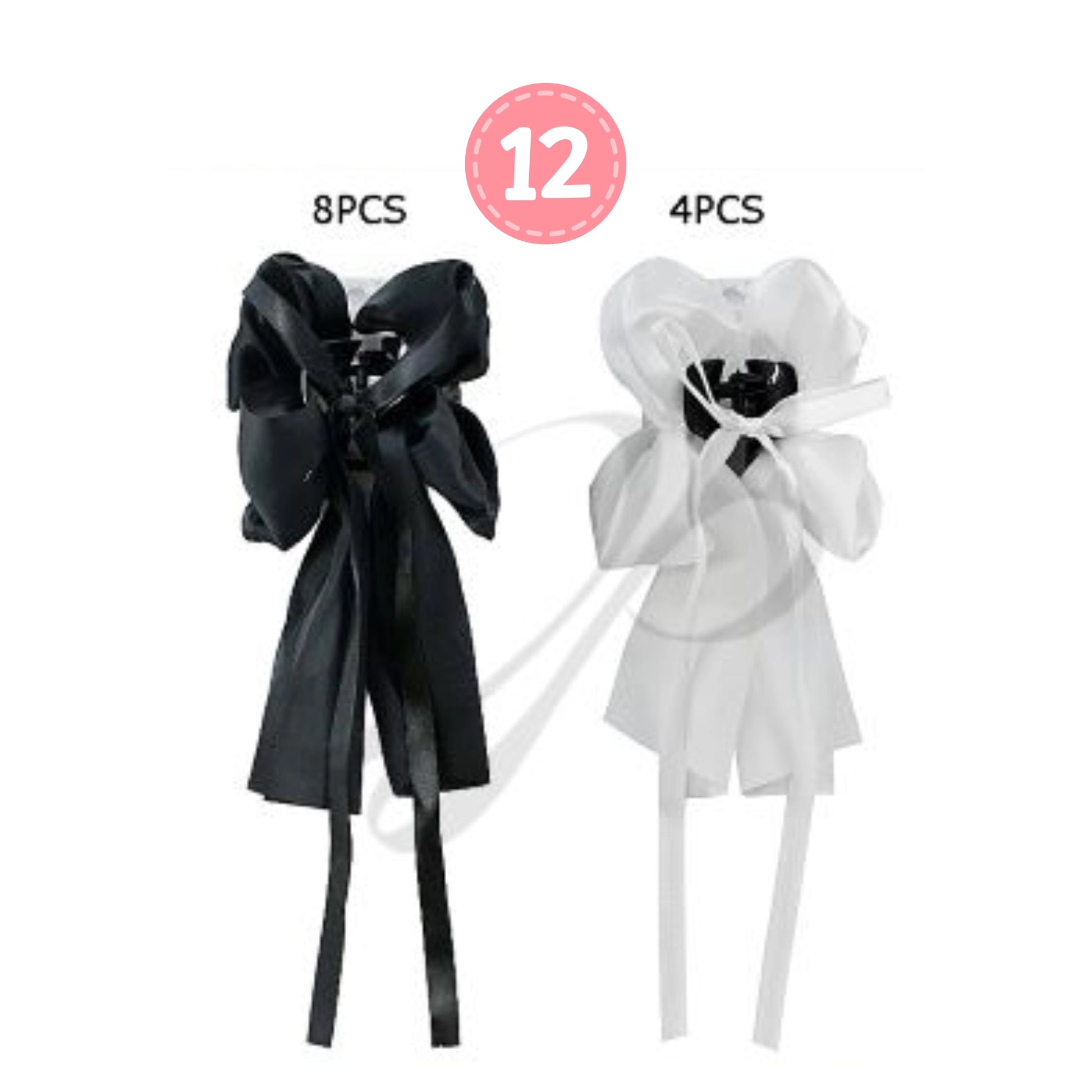 Featuring a soft satin bow with long flowing tails, this clip elevates any look, from casual brunches to evening events. The sturdy claw base holds hair securely while maintaining a light and comfortable feel throughout the day.