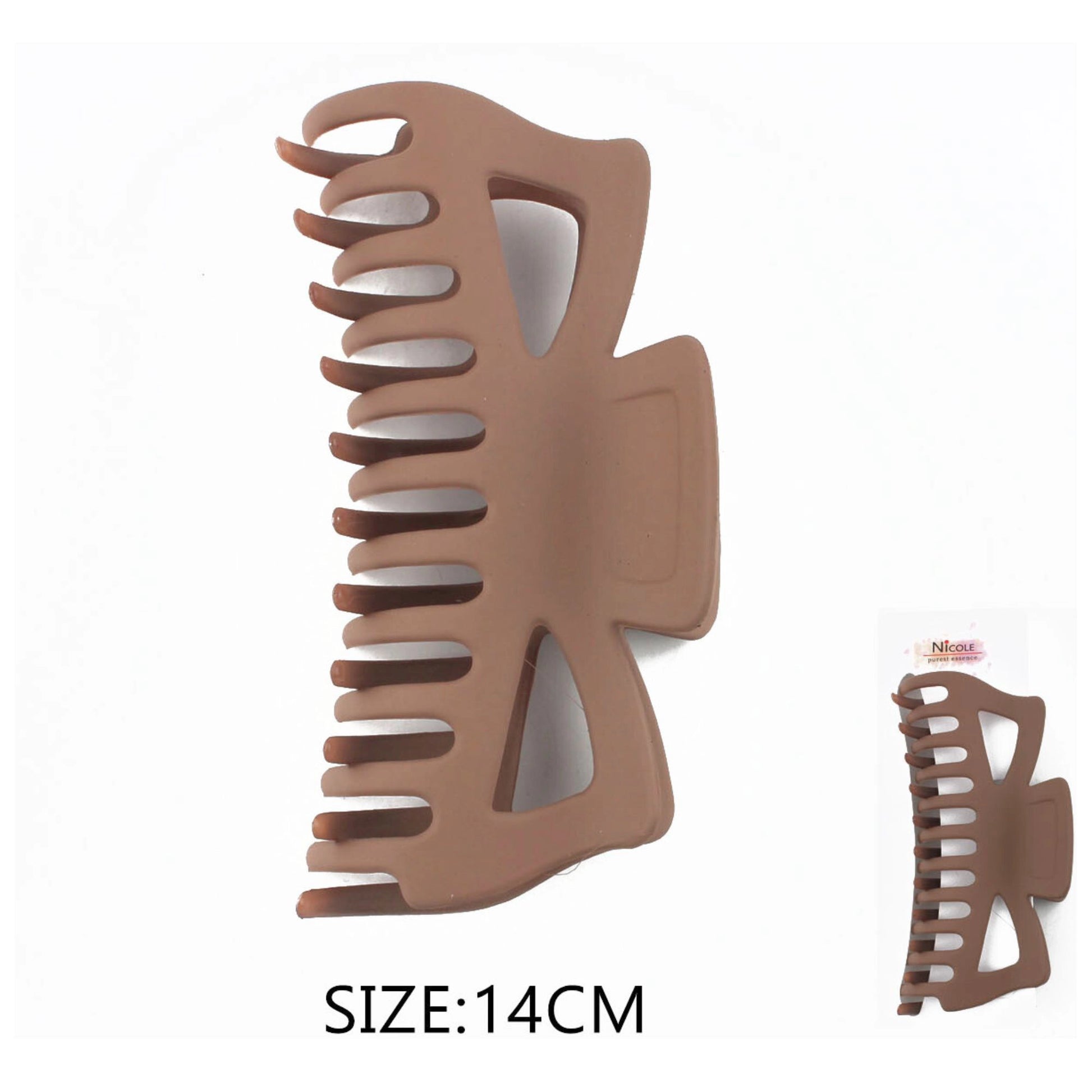 Crafted from durable, lightweight resin, it features a strong spring hinge that provides a secure hold for thick or fine hair. The open-triangle cutouts not only reduce weight but also create a stylish, contemporary silhouette that elevates any look.