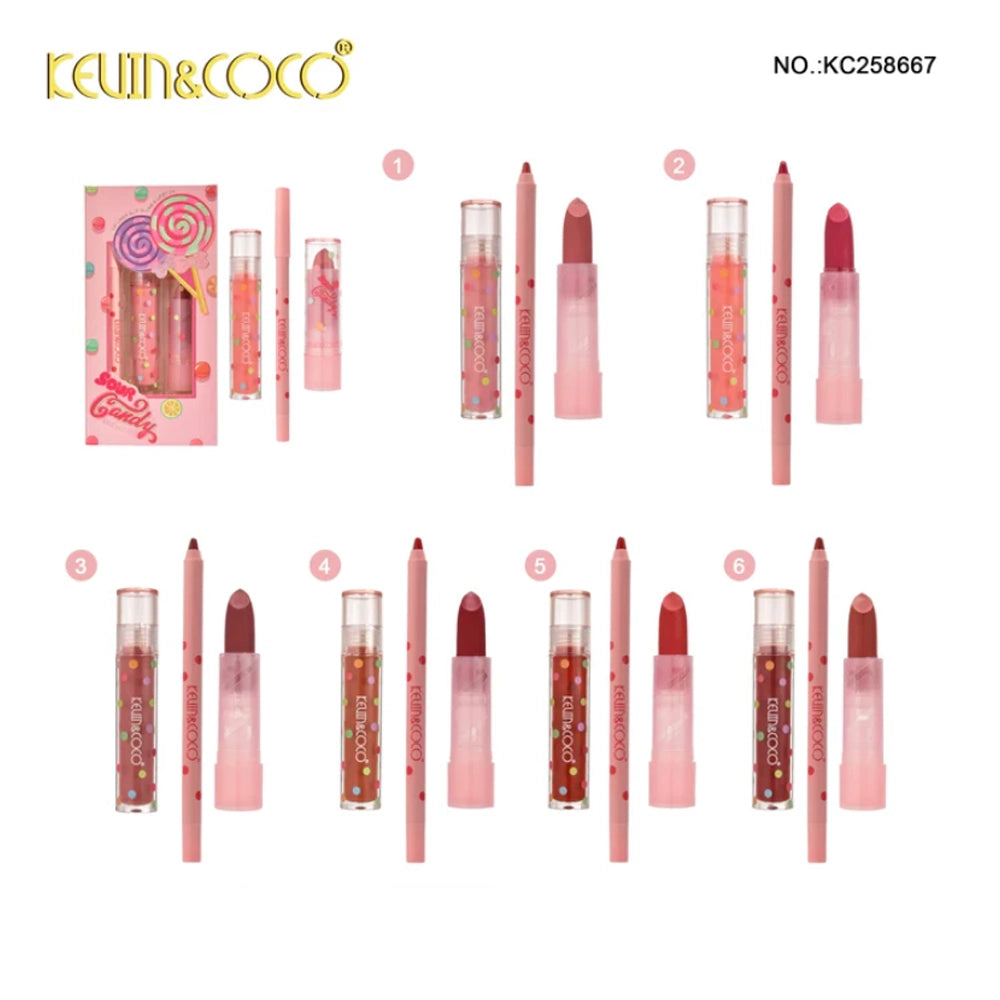 Kevin&Coco - Candy Collection Lip Kit Lip Liner Pen+ Lip Glaze+ Lipstick