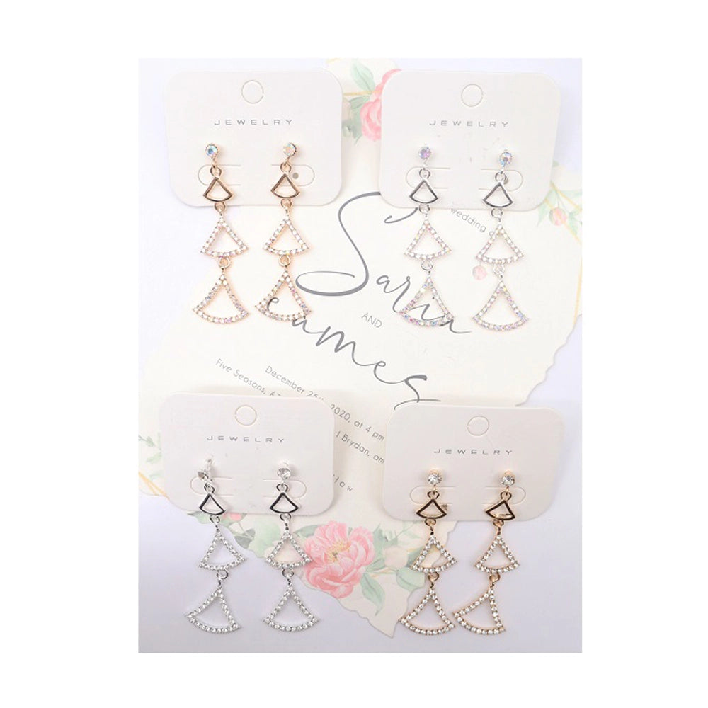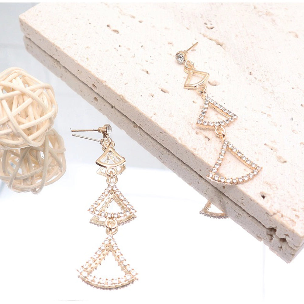 Elevate your accessory collection with these Geometric Rhinestone Tiered Drop Earrings. Designed for the modern woman who loves a touch of architectural elegance, these earrings feature a stunning three-tier cascade of open-frame triangles that catch the light from every angle.