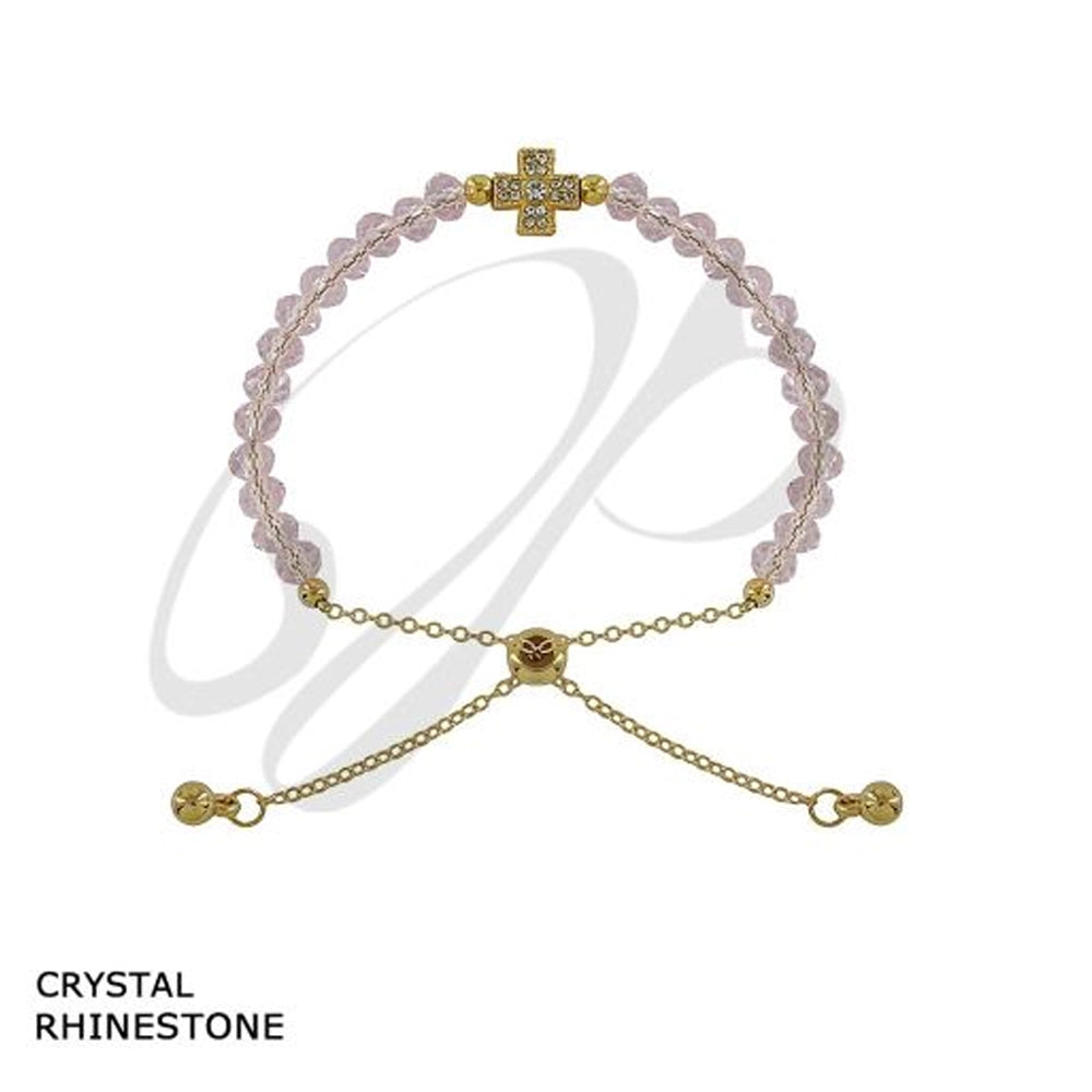 Crystal Rhinestone Cross Bolo Bracelet - Adjustable Beaded Faith Jewelry for Women & Girls (BRC-47075)