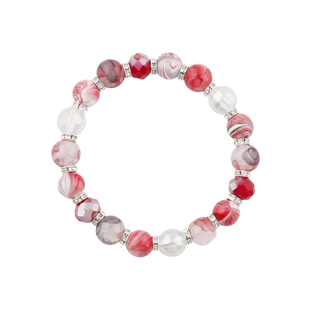 Beaded Stretch Bracelet - Marbled Acrylic & Faceted Crystal Stones with Rhinestone Spacers