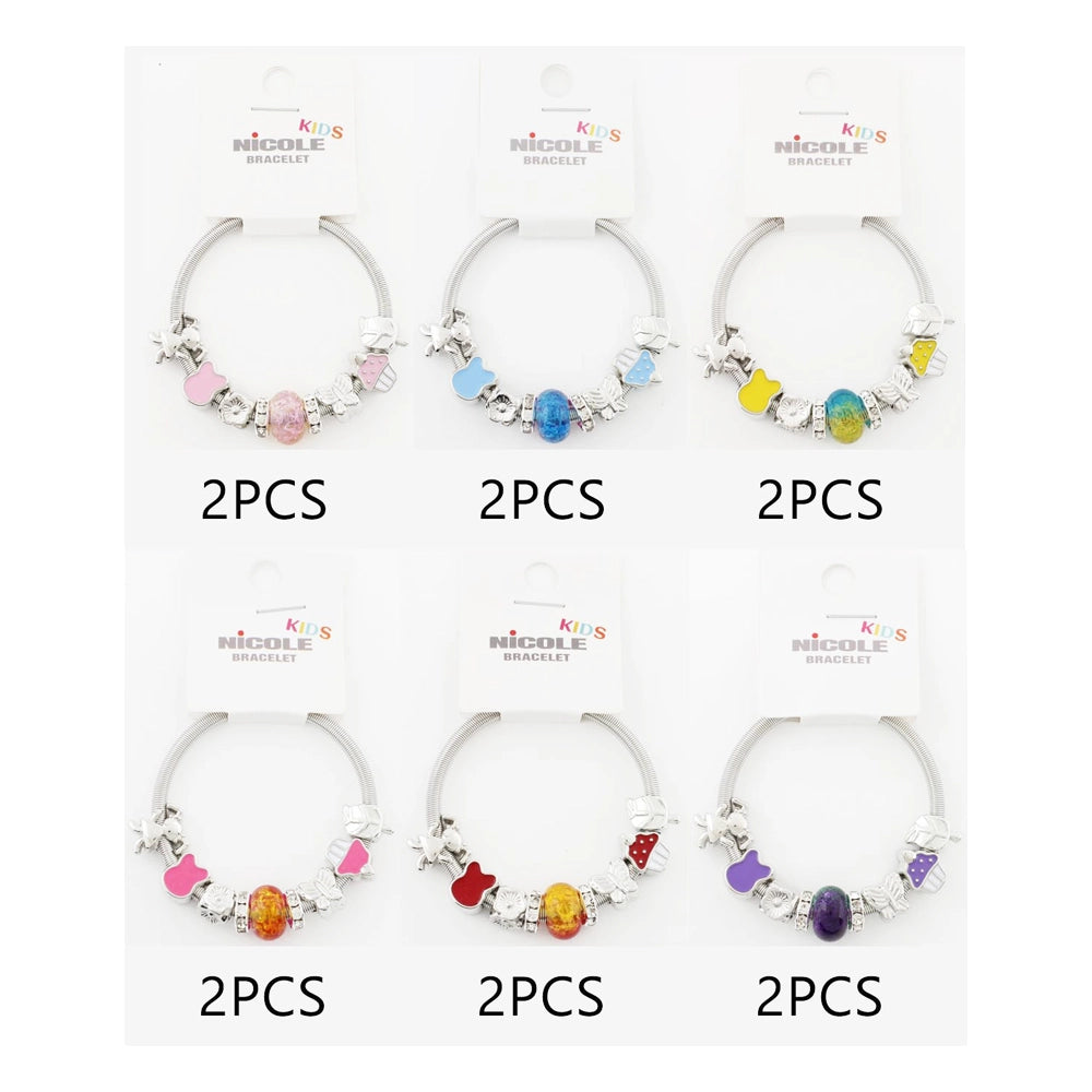Kids Adjustable Silver-Tone Charm Bracelet – Colorful Bead & Pendant Set (CB2902)