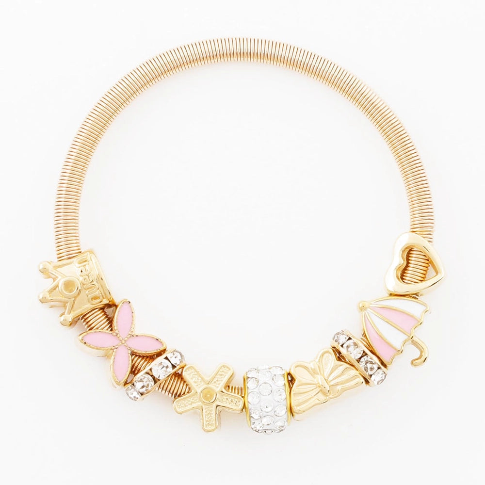 Brighten up any little one's jewelry collection with this adorable Kids’ Expandable Charm Bracelet. Designed with both style and comfort in mind, these bracelets feature a flexible, gold-finished coil band that easily slides onto small wrists without the hassle of a clasp.