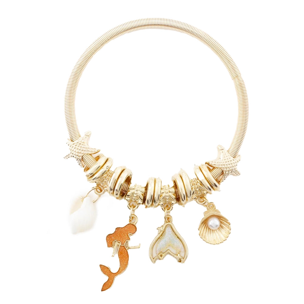 Bohemian Mermaid Charm Bracelet – Nautical Ocean-Themed Gold & Silver Bangle with Seashell & Starfish Charms (CB2925)