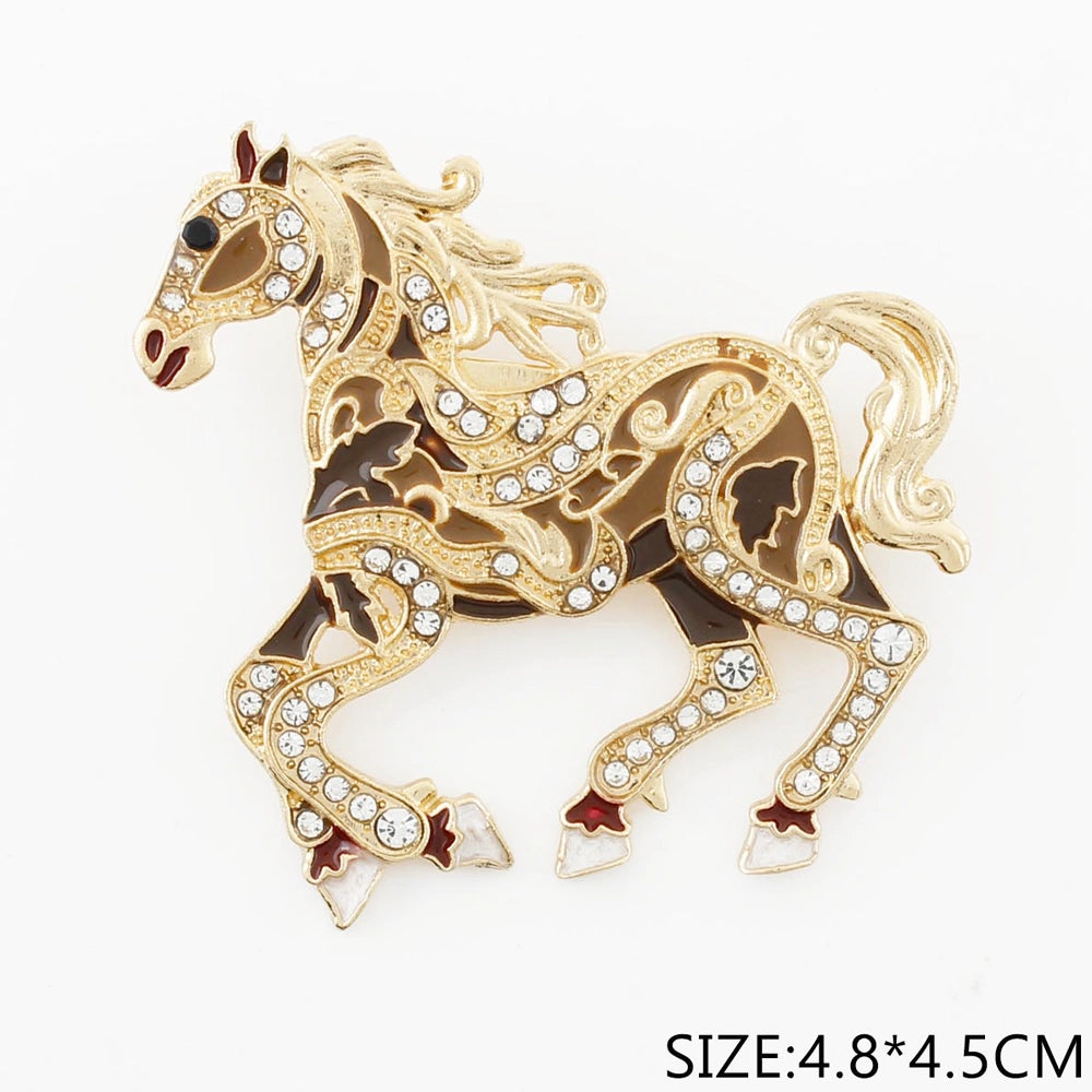Vintage-Inspired Enamel & Crystal Horse Brooch Pin - Elegant Equestrian Jewelry (CC1204)