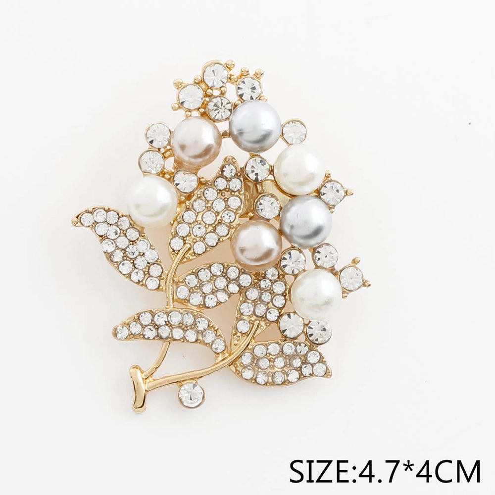 Vintage Floral Pearl & Crystal Brooch Pin - Elegant Bouquet Design (Gold & Silver Tone) (CC1208)