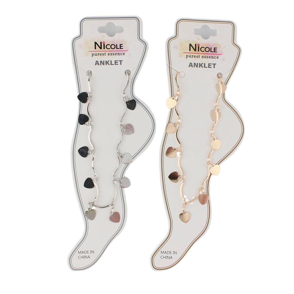 Dainty Wavy Heart Anklet | Gold & Silver Tone Charm Foot Jewelry | Boho Beach Ankle Bracelet
