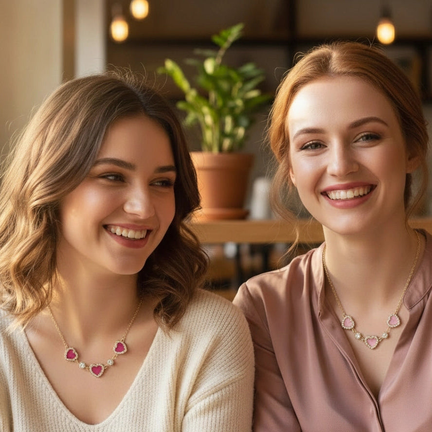 - Sparkling Accents: Each heart is framed by shimmering rhinestones, with additional crystal spacers between the hearts for extra brilliance.