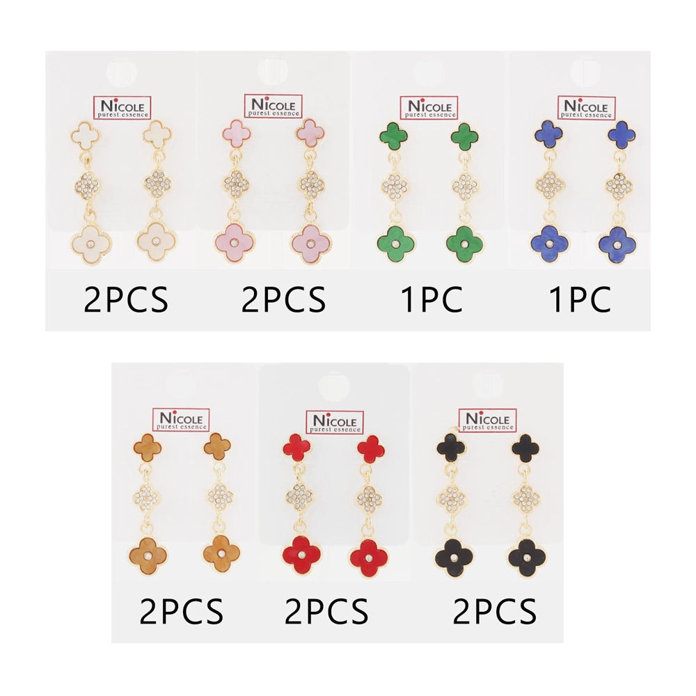 - Elegant Design: A vertical drop featuring three graduated clover (quatrefoil) motifs. The top and bottom clovers feature a smooth, colorful inlay, while the center clover is encrusted with shimmering pavé crystals for a touch of sparkle.