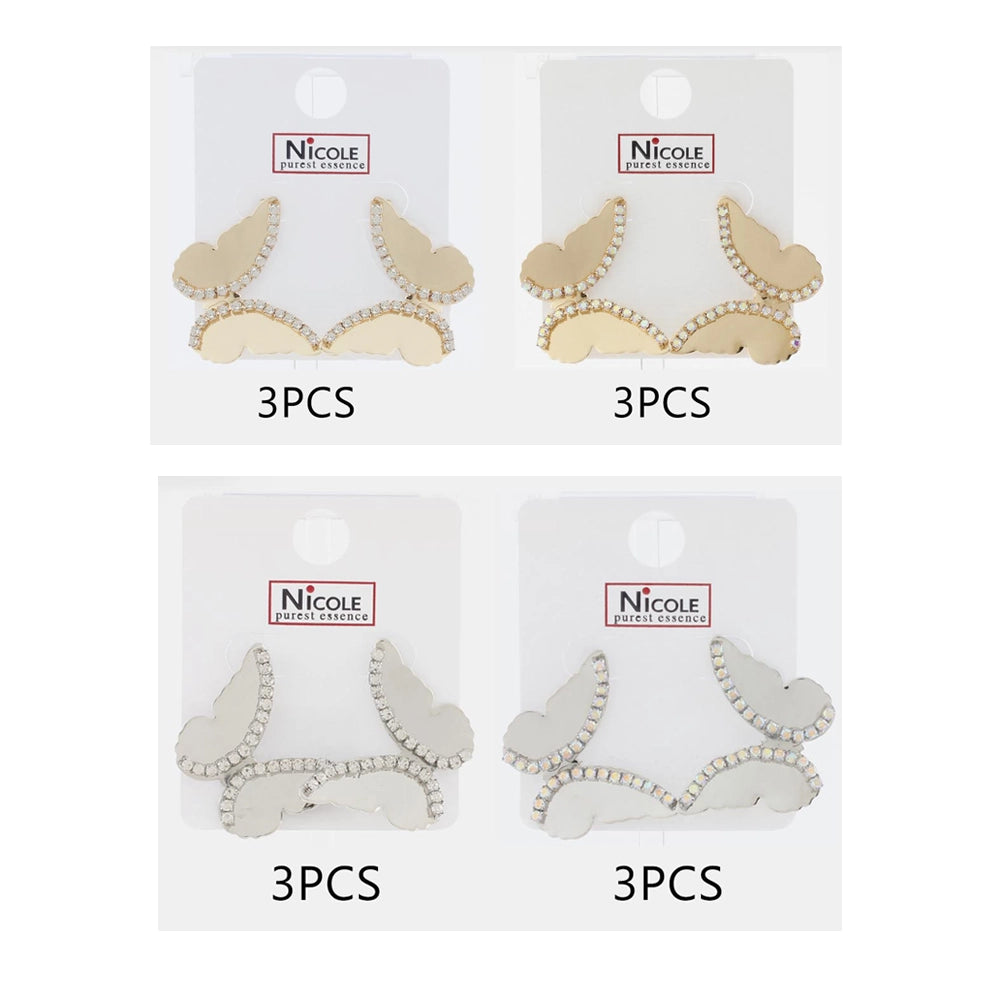 These butterfly post earrings offer a whimsical yet sophisticated touch, perfect for adding a bit of "flutter" to any jewelry collection. The design features a sleek, solid wing paired with a shimmering crystal-encrusted border that catches the light beautifully.