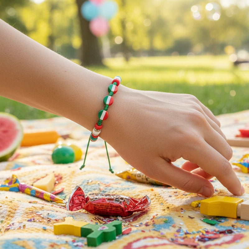 Adjustable Tricolor Flag Beaded String Bracelets (Red, White, Green)