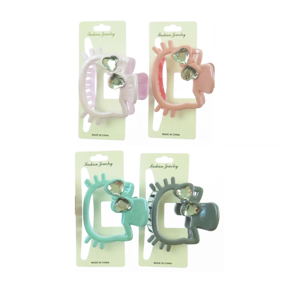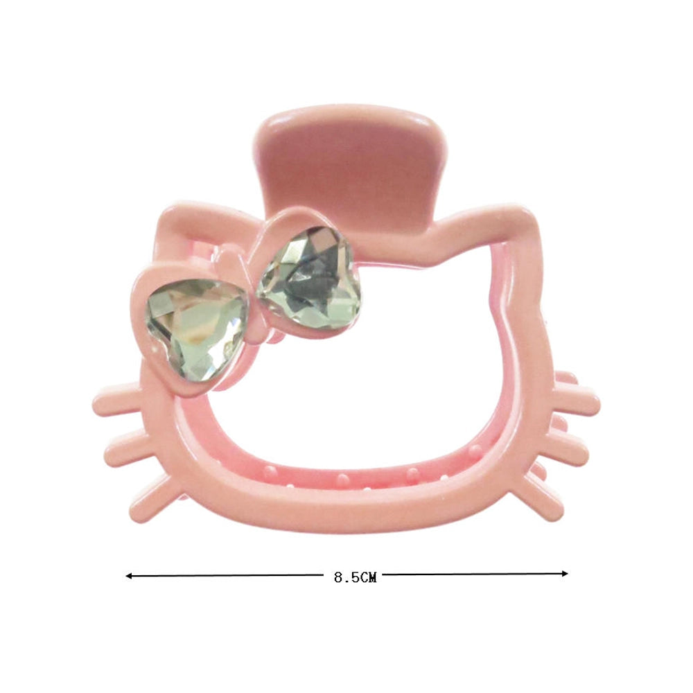 Sparkly Feline Hair Claw Clip – 8.5cm Large Hollow-Out Kitty Silhouette Hair Jaw with Rhinestone Heart Bow (H2504)