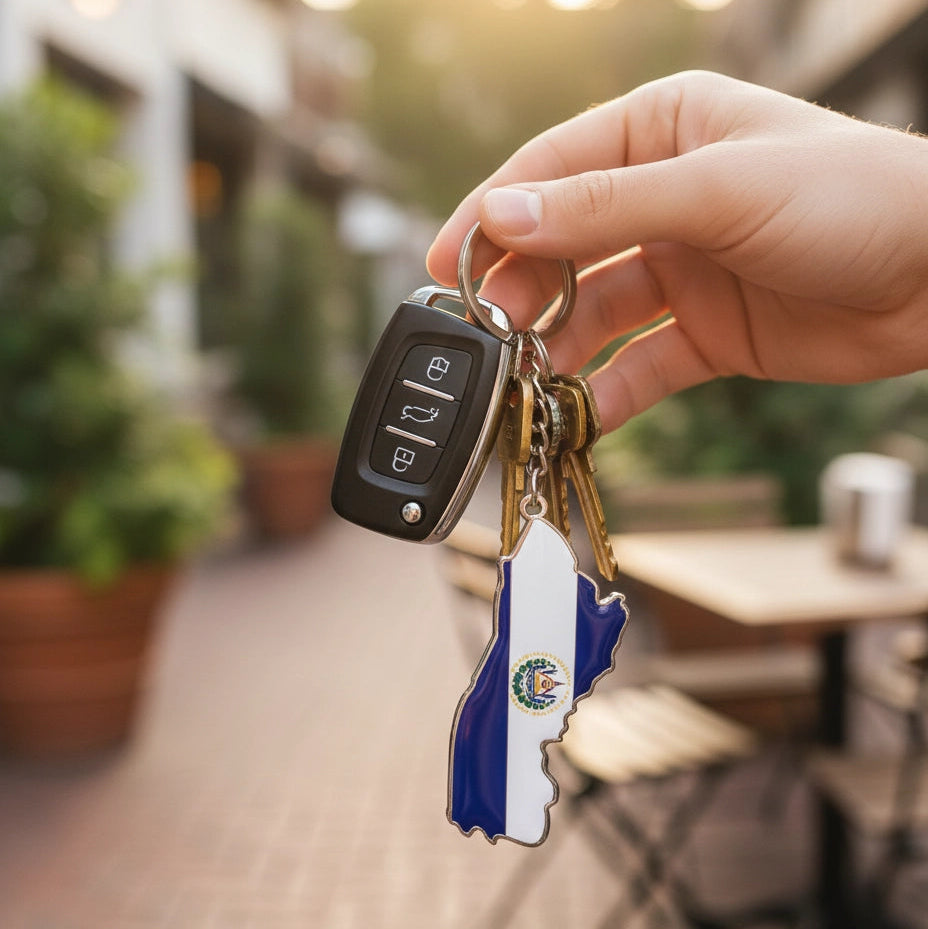 Showcase your pride and heritage with this vibrant El Salvador Flag Map Keychain. This premium souvenir key ring is the perfect accessory for anyone who loves El Salvador—whether you're a proud Salvadoran, a recent traveler, or planning your next Central American adventure.