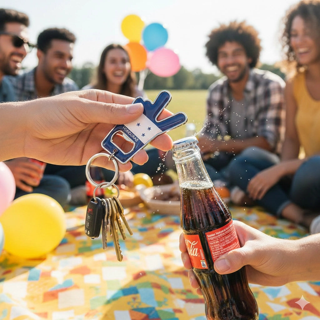 Carry a piece of Honduras pride everywhere you go with this unique and highly practical 2-in-1 keychain. Designed as a fun peace-sign hand gesture, this durable metal fob features the iconic blue and white stripes and five stars of the Honduran flag. It's the perfect way to keep your keys organized while always having a handy bottle opener at your fingertips.