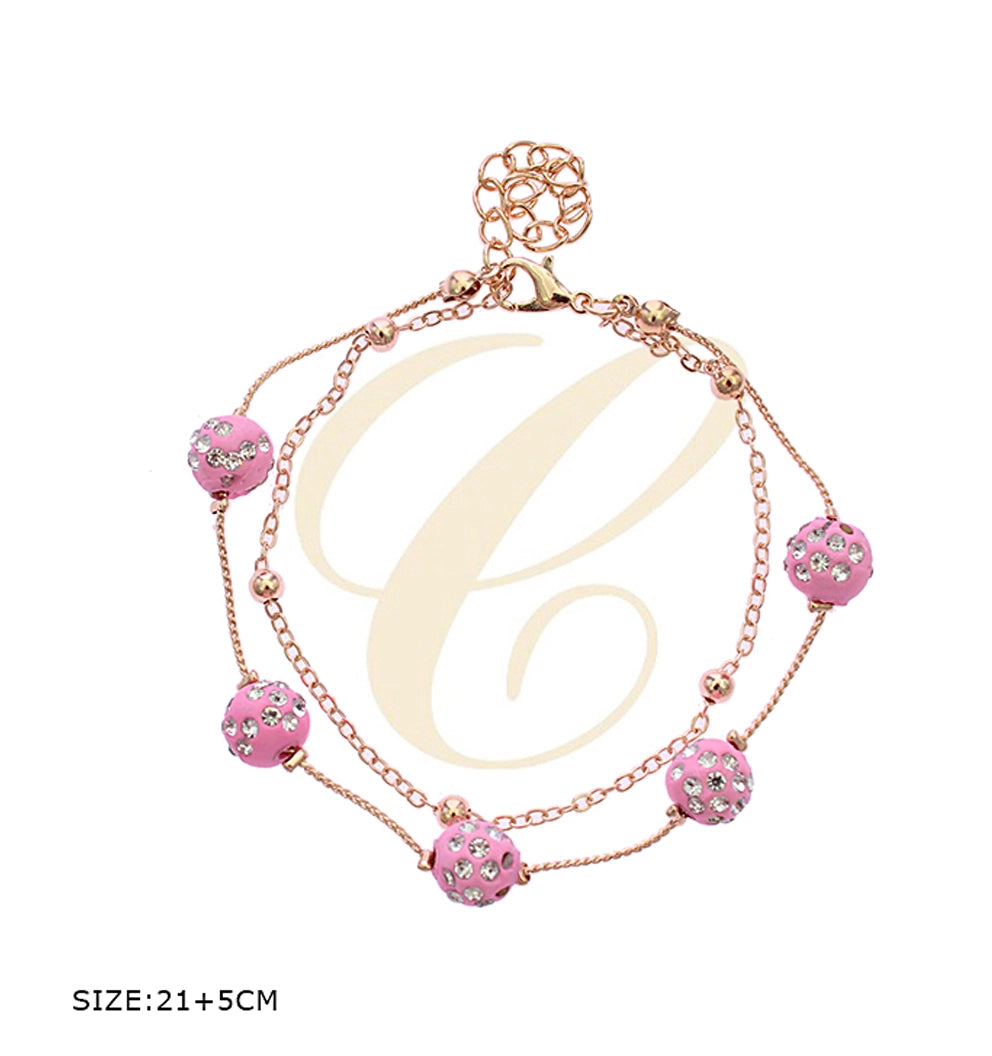 Step out in style with our Dazzling Shamballa Bead Layered Chain Accessory! This eye-catching piece features a chic double-strand design crafted from lustrous rose gold-tone chain and delicate bead accents. The main attraction is the sparkle provided by the four striking, resin-covered beads, each adorned with a cluster of shimmering rhinestones in the Shamballa style.