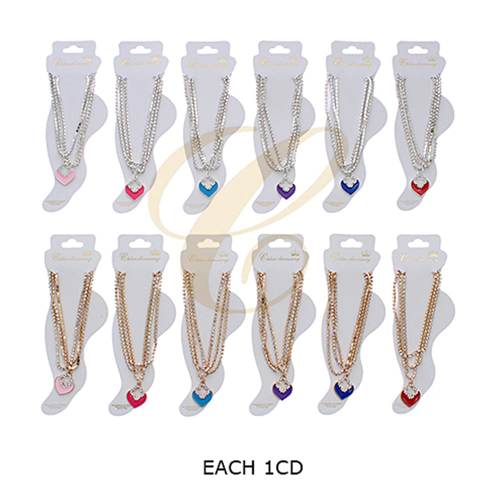 Sparkling Layered Rhinestone Ankle Bracelet with Heart Charm