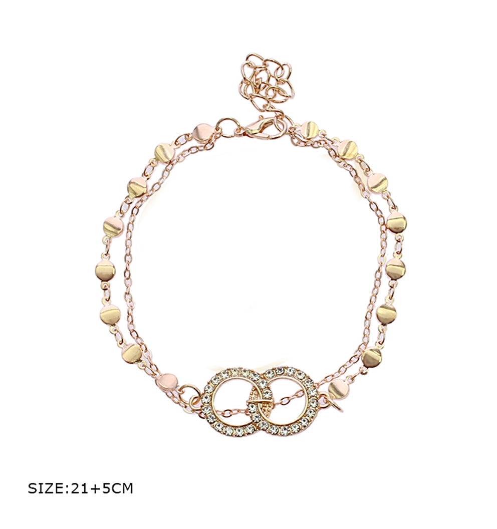 Chic Layered Heart Chain Anklet - Double Circle Charm