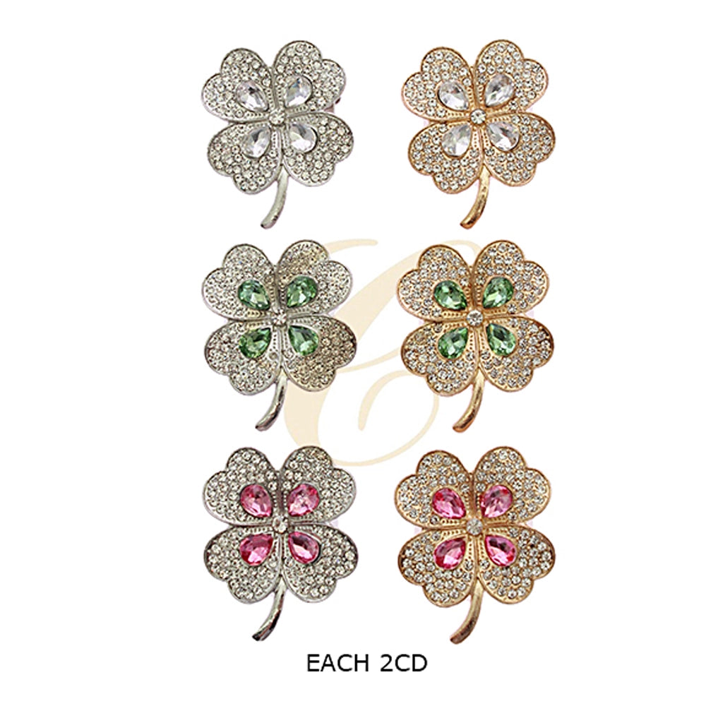 This is a sparkling four-leaf clover brooch (Item No: RBC-0248R), designed with a luxurious, pave-set aesthetic. It serves as both a decorative fashion accessory and a "good luck" charm.