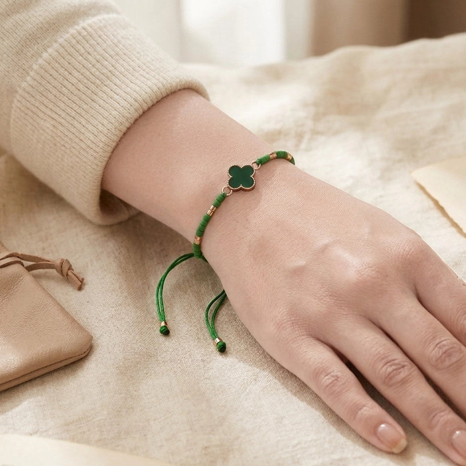 - Symbolic Design: Features a central four-leaf clover (Alhambra-style) charm, symbolizing luck, faith, hope, and love.
