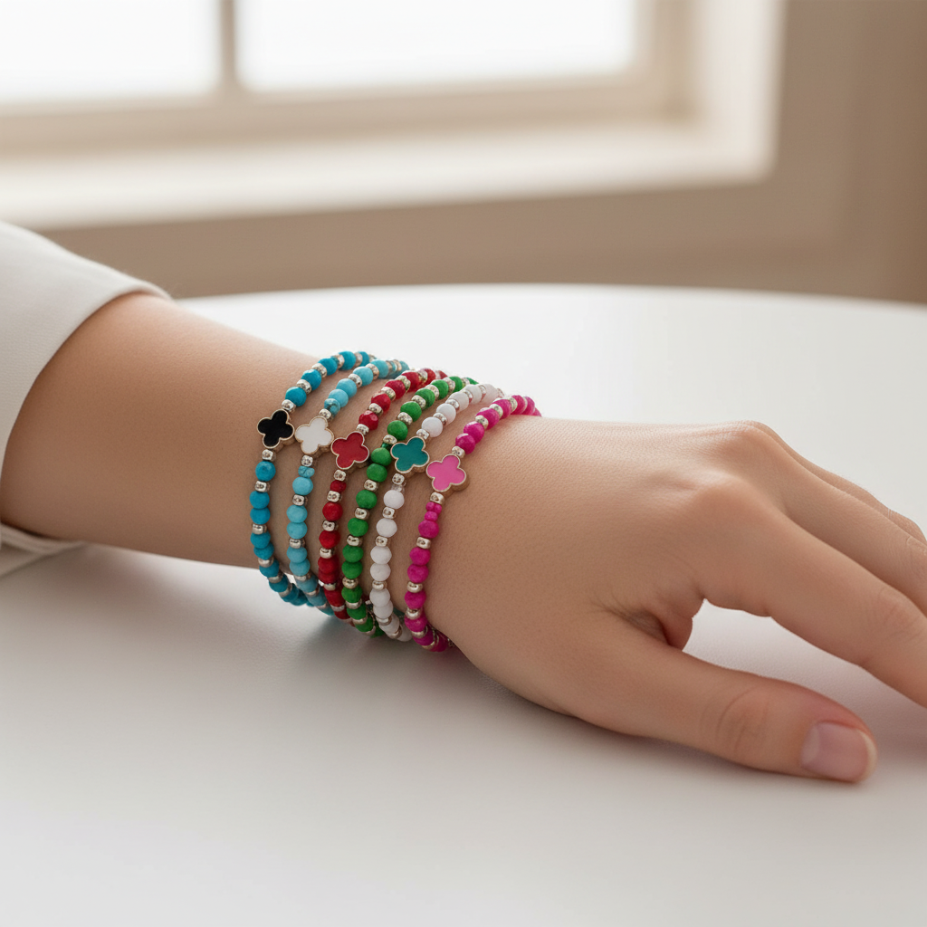 Add a touch of luck and vibrant color to your accessory collection with this Adjustable Clover Charm Beaded Bracelet. Perfectly blending bohemian charm with elegant detailing, this bracelet is designed for versatile, everyday wear.