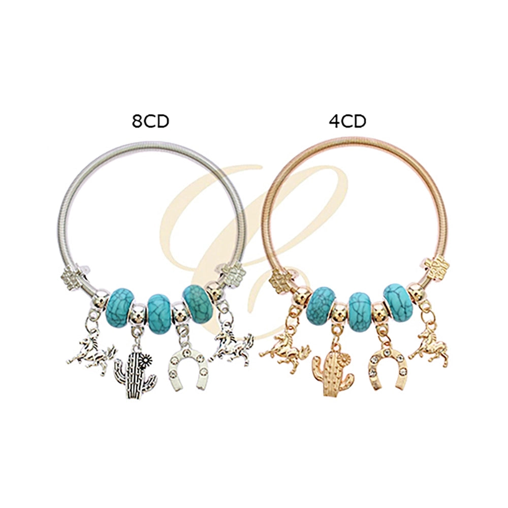 Add a touch of desert-inspired flair to your accessory collection with this stunning Western-themed charm bracelet. Combining vibrant turquoise accents with classic Southwestern motifs, this piece is perfect for those who love bohemian, cowgirl, or eclectic jewelry styles.