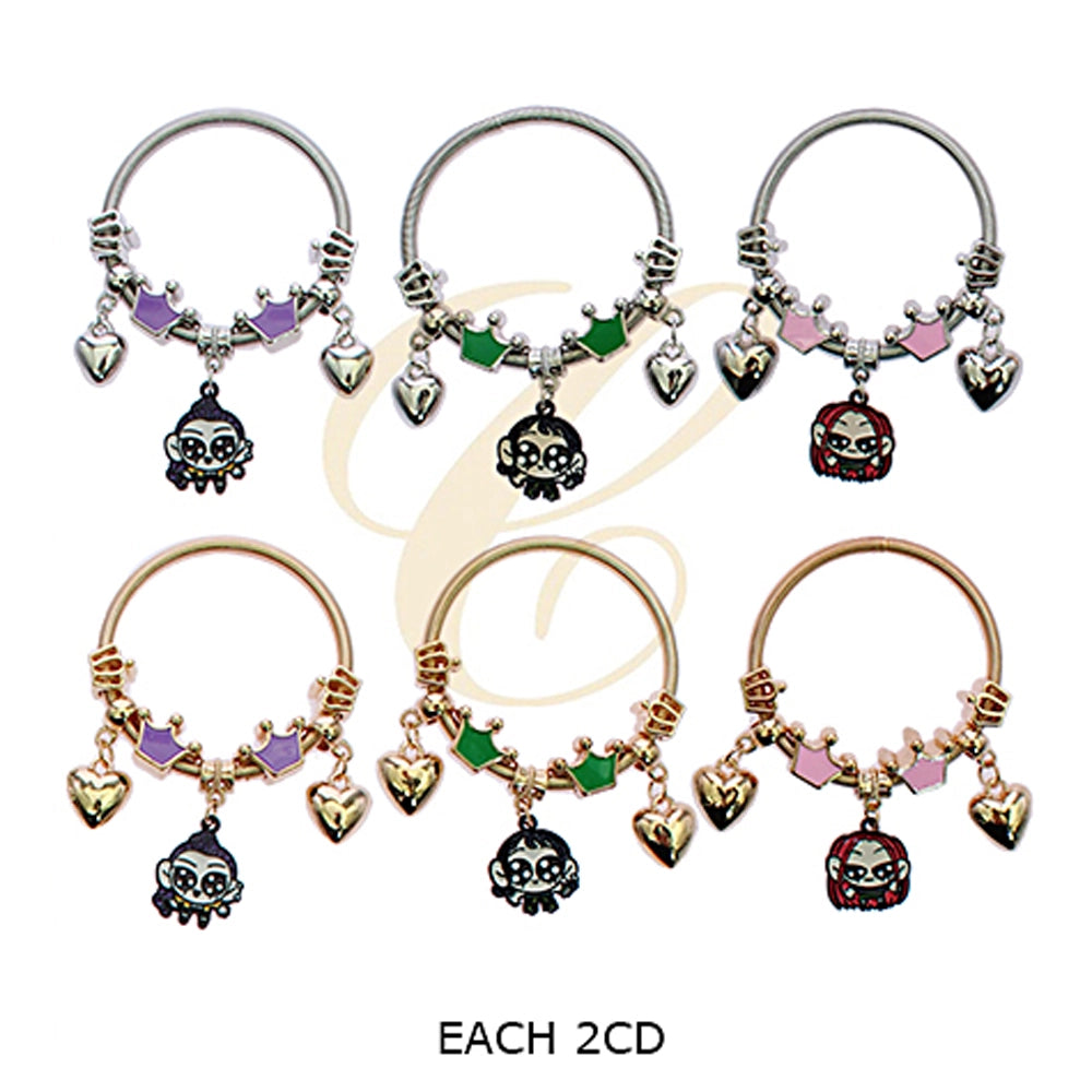 Kids' Monster-Chic Stretch Charm Bracelet – Heart & Crown Accents (RBT-2278R)