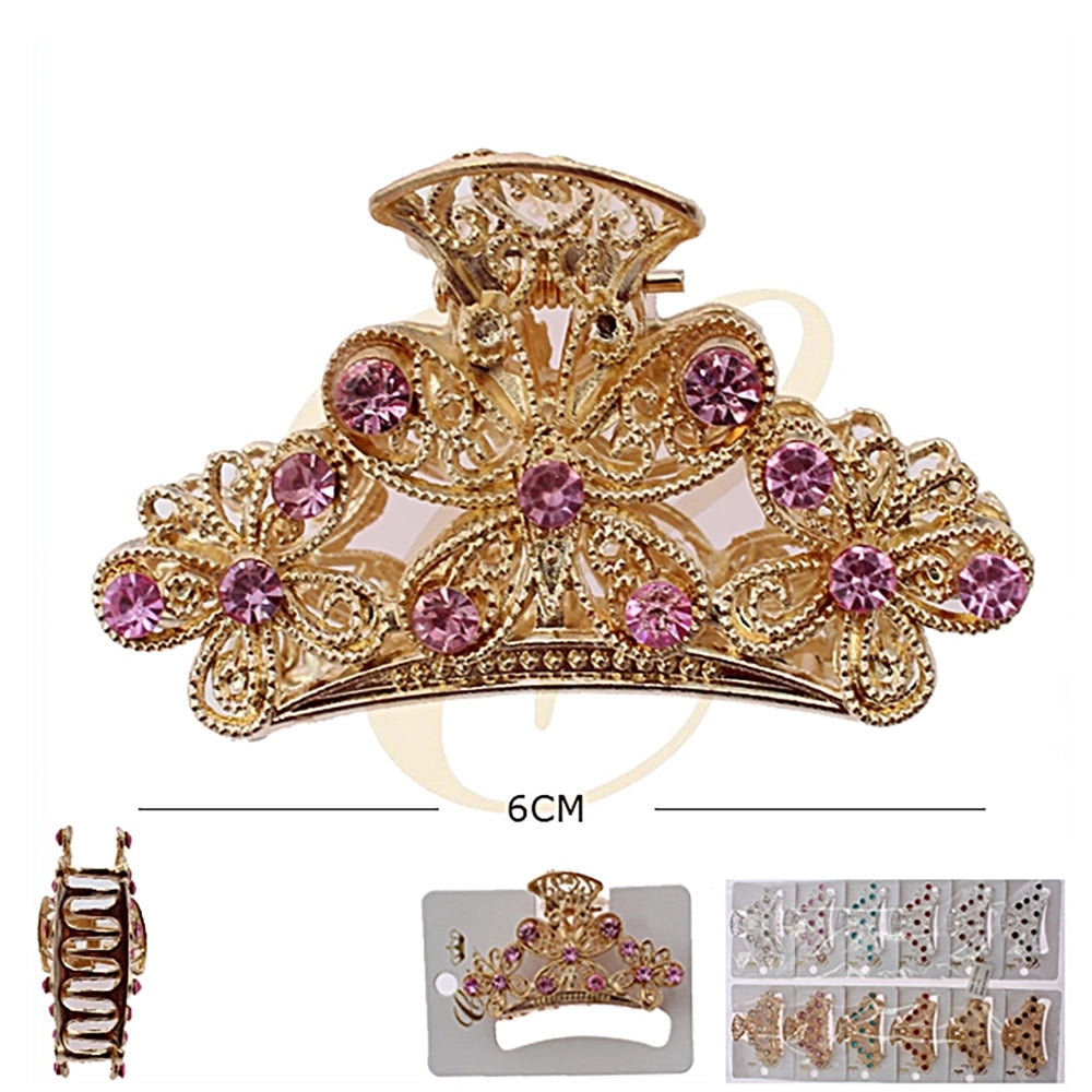 Vintage-Style Filigree Butterfly Hair Claw Clip with Sparkling Crystals - 6cm Metal Jaw Clip for Women & Girls (RCP-0189R6)