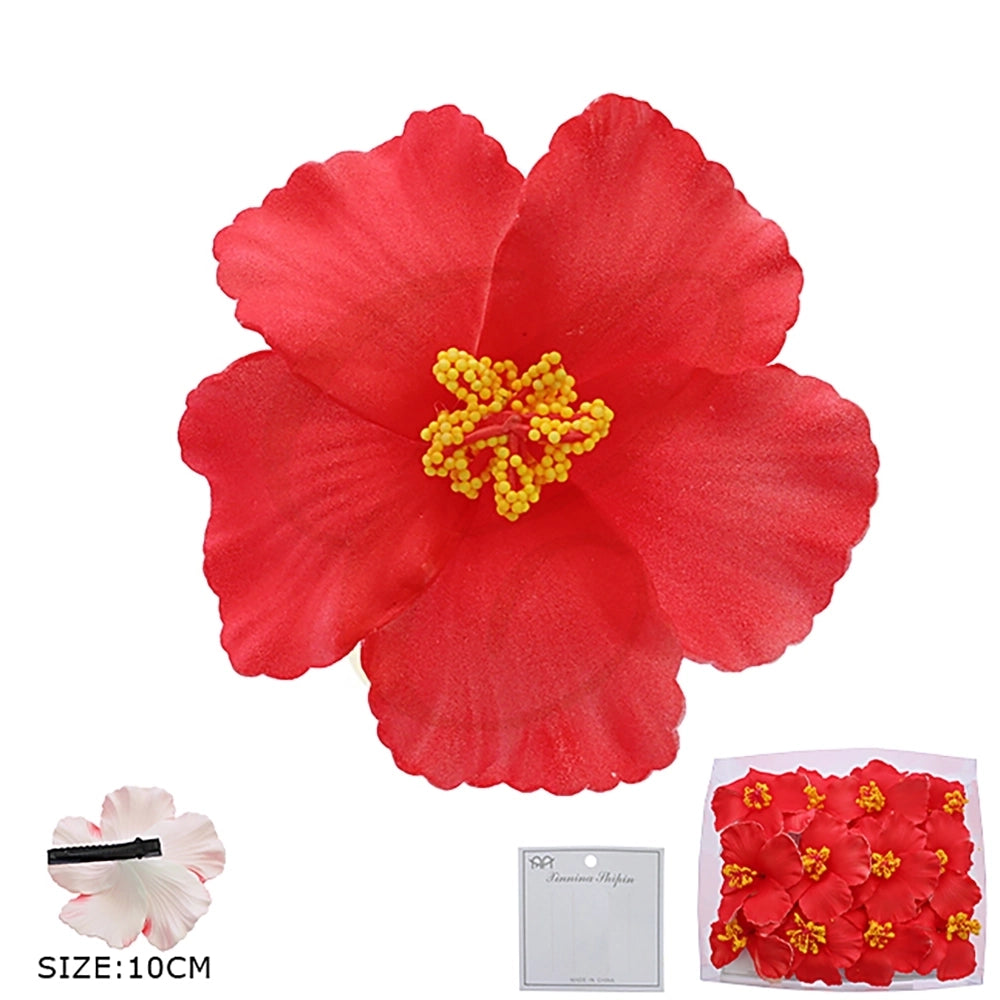 Large Tropical Red Hibiscus Flower Hair Clip (10cm) – Realistic Hawaiian Floral Accessory for Luau, Beach Weddings, and Summer Style (RCP-0827RED)