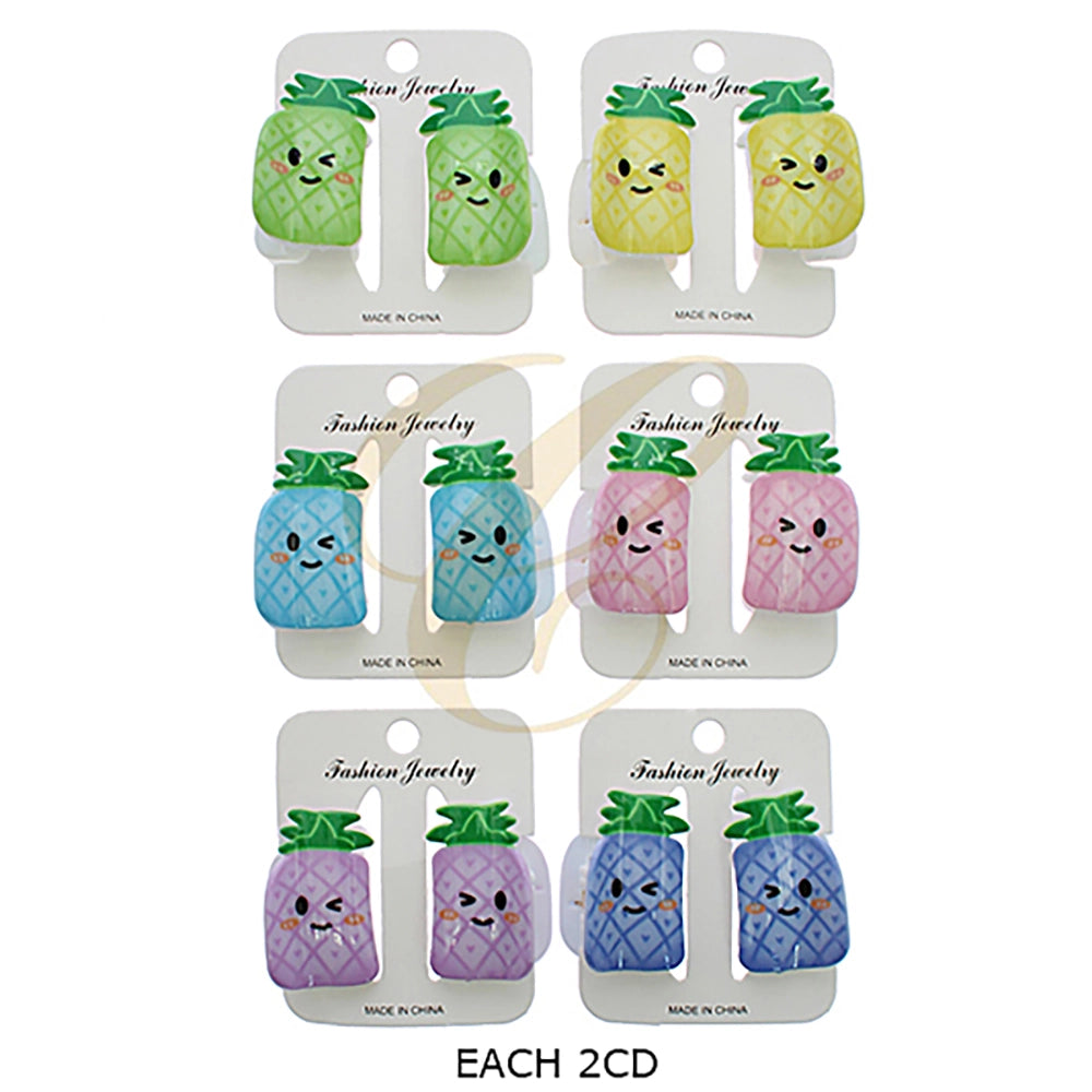 2-Piece Kawaii Winking Pineapple Hair Claw Clips - Cute Summer Fruit Hair Accessories for Girls and Women - Pastel Colors (4.5cm) (RCP-0849)
