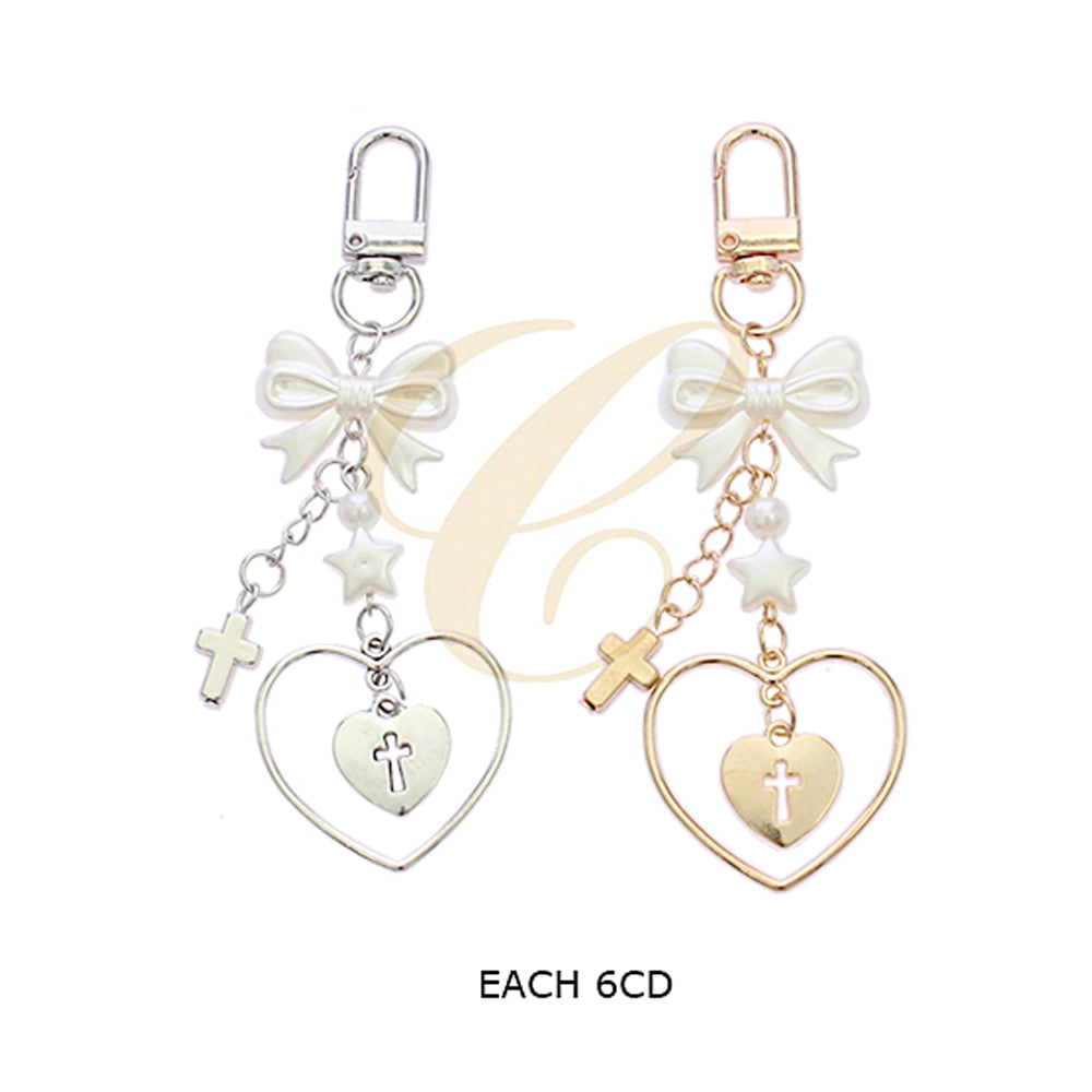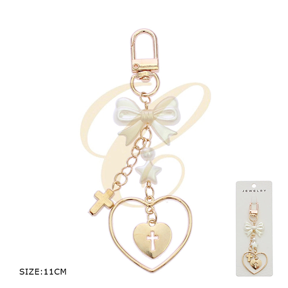 Elegant Heart & Cross Bow Keychain – Coquette Aesthetic Accessory RKC-0461GS