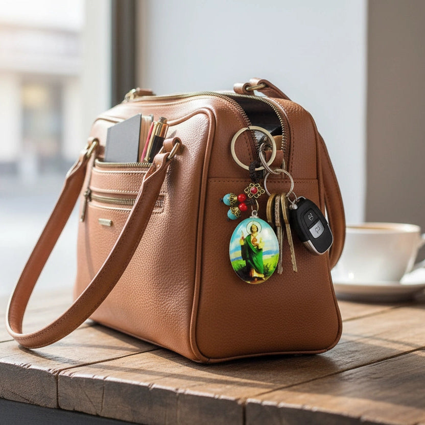 Carry a symbol of faith, hope, and perseverance with our beautiful St. Jude Thaddeus keychain. St. Jude is universally revered as the Patron Saint of Lost Causes and Desperate Situations, offering comfort and strength when it's needed most.