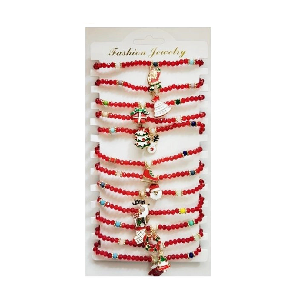 Instantly festive! Get six strands of holiday cheer with our dazzling red crystal-look charm bracelets. Featuring adorable enameled charms like Santa, Christmas Tree, and Gift Box, this set is perfect for gifting, stocking stuffers, or adding a merry touch to your look!